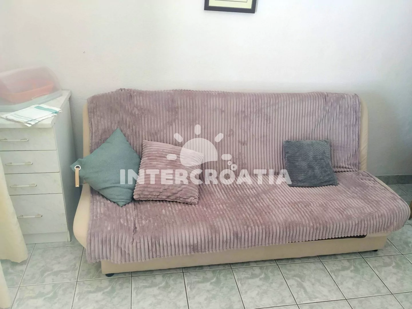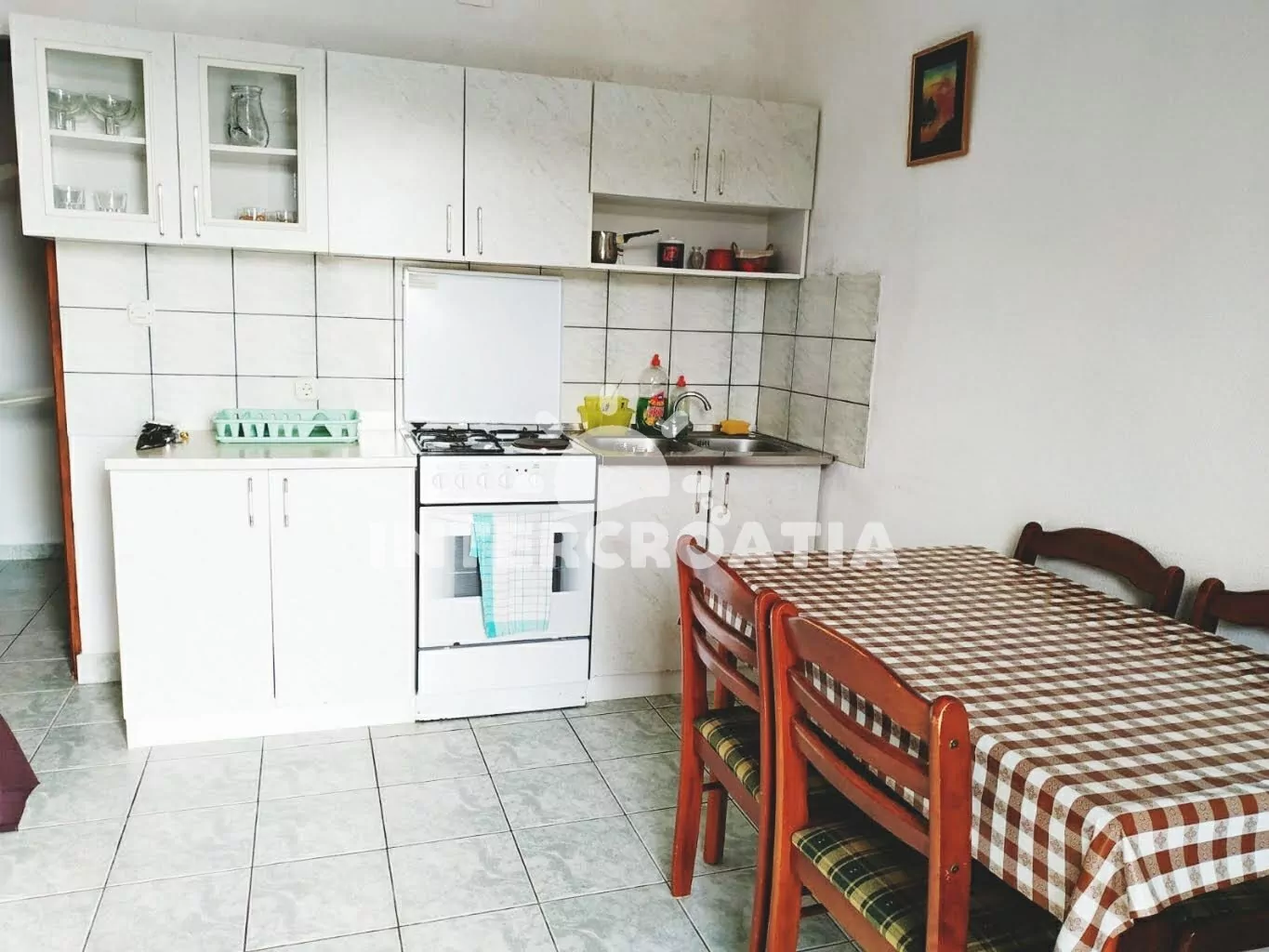 Apartmán (50 m2) s balkonem, venkovním posezením a výhledem na moře se nachází v 1. patře vily. Apartmán má 2 ložnice a je vhodný pro až 4 osoby. Obývací pokoj je spojený s kuchyní. Kuchyňská linka…