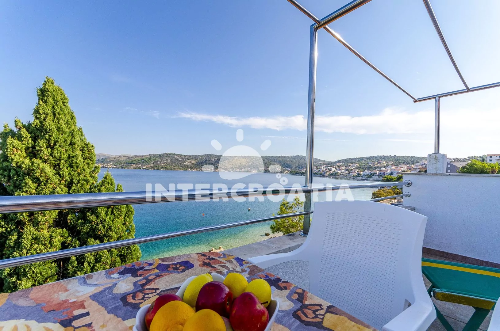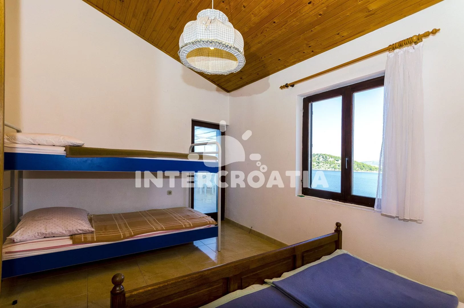 Apartmán (35 m2) s terasou, výhledem na moře a venkovním posezením se nachází v 2. patře domu. Apartmán je vhodný pro 2 až 4 osoby. Obývací místnost je spojena s kuchyní. Kuchyňská linka je vybavena sporákem s troubou, rychlovarnou konvicí, nádobím a lednicí s mrazákem. Obývací místnost s jídelním stolem a televizí se satelitním programem. Ložnice s dvoulůžkem a patrovým lůžkem (lůžka pro 2 osoby). Koupelna se sprchovým koutem, umyvadlem a wc. Hostům je k dispozici parkování u objektu zdarma.