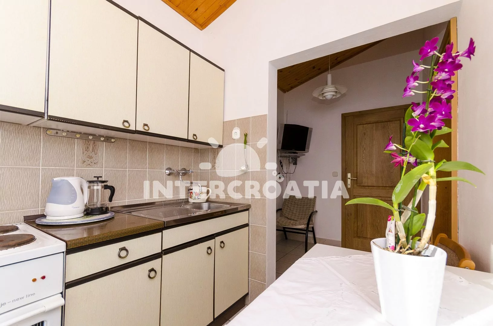 Apartmán (35 m2) s terasou, výhledem na moře a venkovním posezením se nachází v 2. patře domu. Apartmán je vhodný pro 2 až 4 osoby. Obývací místnost je spojena s kuchyní. Kuchyňská linka je vybavena…