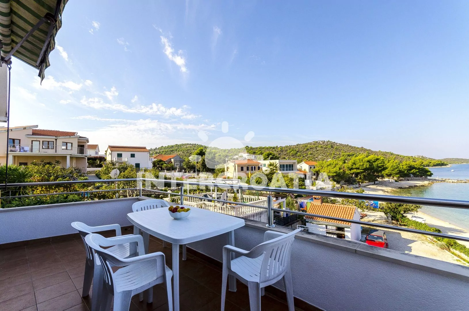 Vzdálenosti: Moře a oblázková pláž 10 m, centrum, supermarket, restaurace, bar 500 m, veřejná doprava 7 km, ambulance, lékárna, pošta, směnárna, banka, půjčovna cyklistických kol 11 km, čerpací stanice 20 km, letiště, muzeum 25 km, trajekt 50 km.