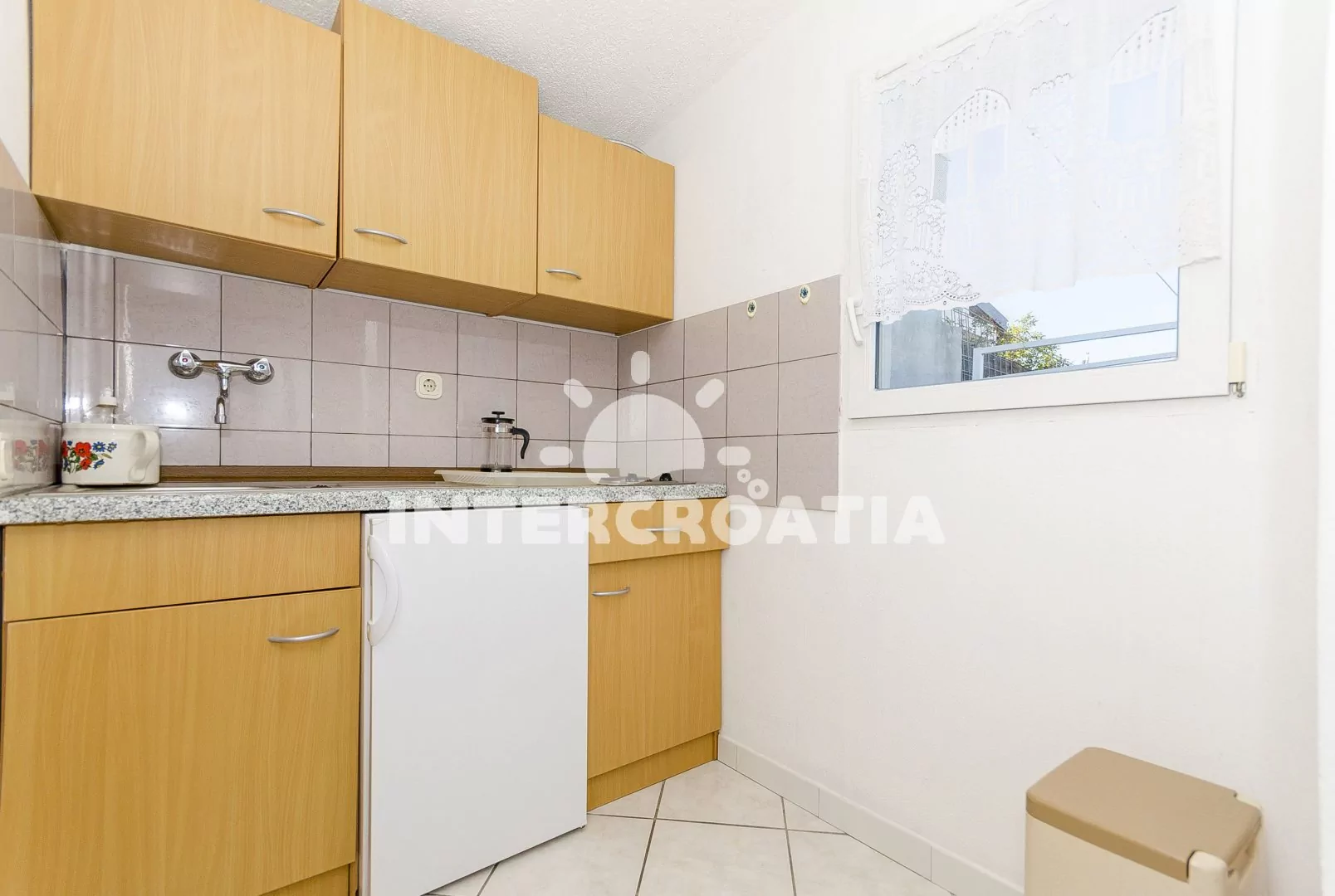 Apartmán (25 m2) typu studio se sdílenou terasou, výhledem na moře a venkovním posezením se nachází v přízemí domu. Apartmán je vhodný pro 2 osoby. Obývací místnost je spojena s kuchyní. Kuchyňská…