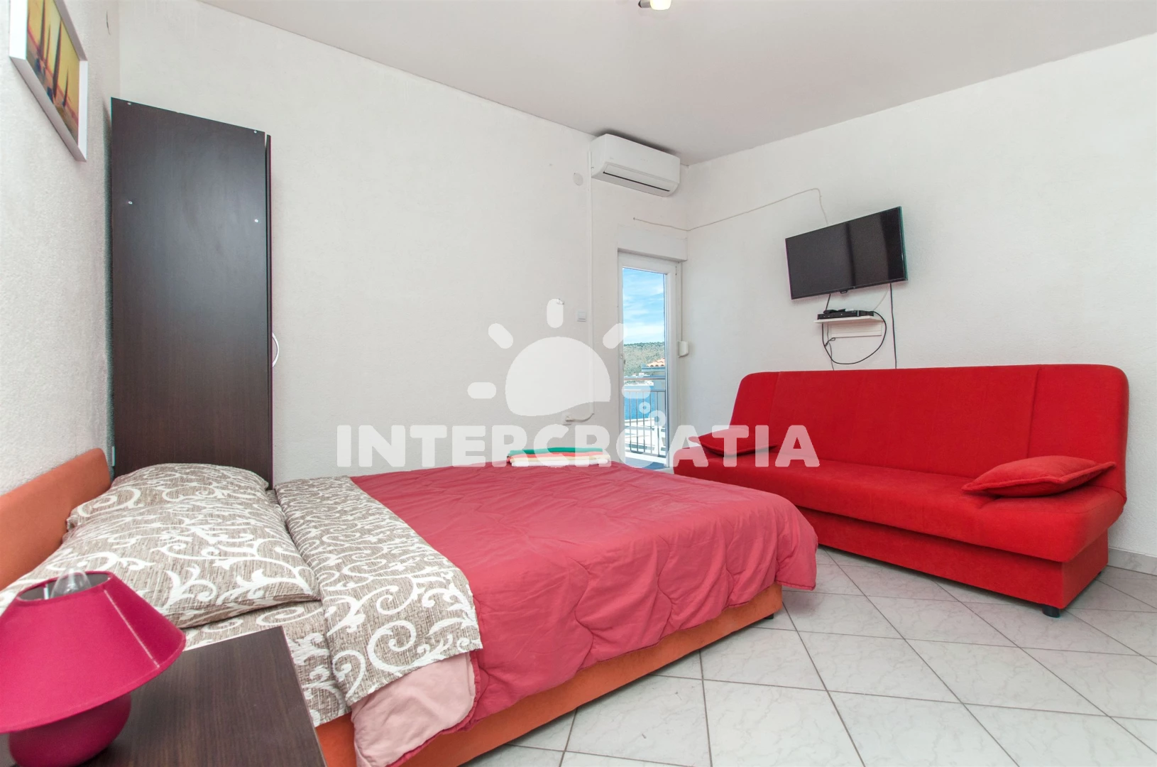 Apartmán typu studio (25 m2) s balkonem, a výhledem na moře. Nachází se ve 2. patře objektu. Kuchyňská linka je vybavena varnou deskou, nádobím, mini lednicí. K dispozici dvoulůžko, televize se satelitním programem, žehlička. Koupelna se sprchovým koutem, umyvadlem, WC.