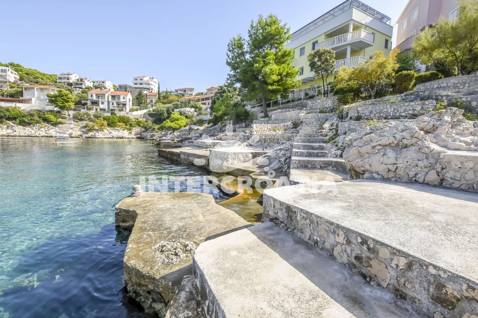 Vzdálenosti: Moře 10 m, pláž 10 m (betonové desky), kotviště pro čluny 10 m, restaurace 1 km, bar 1 km, centrum 1,2 km, supermarket 1,2 km, veřejná doprava 1,2 km, potápění 2 km, půjčovna motorových člunů 12 km, půjčovna kol 12 km, diskotéka 12 km, muzeum 12 km, marina 12 km, lékárna 12 km, ambulance 12 km, pošta 12 km, tenisové kurty 12 km, směnárna 12 km, banka 12 km, čerpací stanice 15 km, letiště (Split) 30 km, trajekt (Split) 50 km,