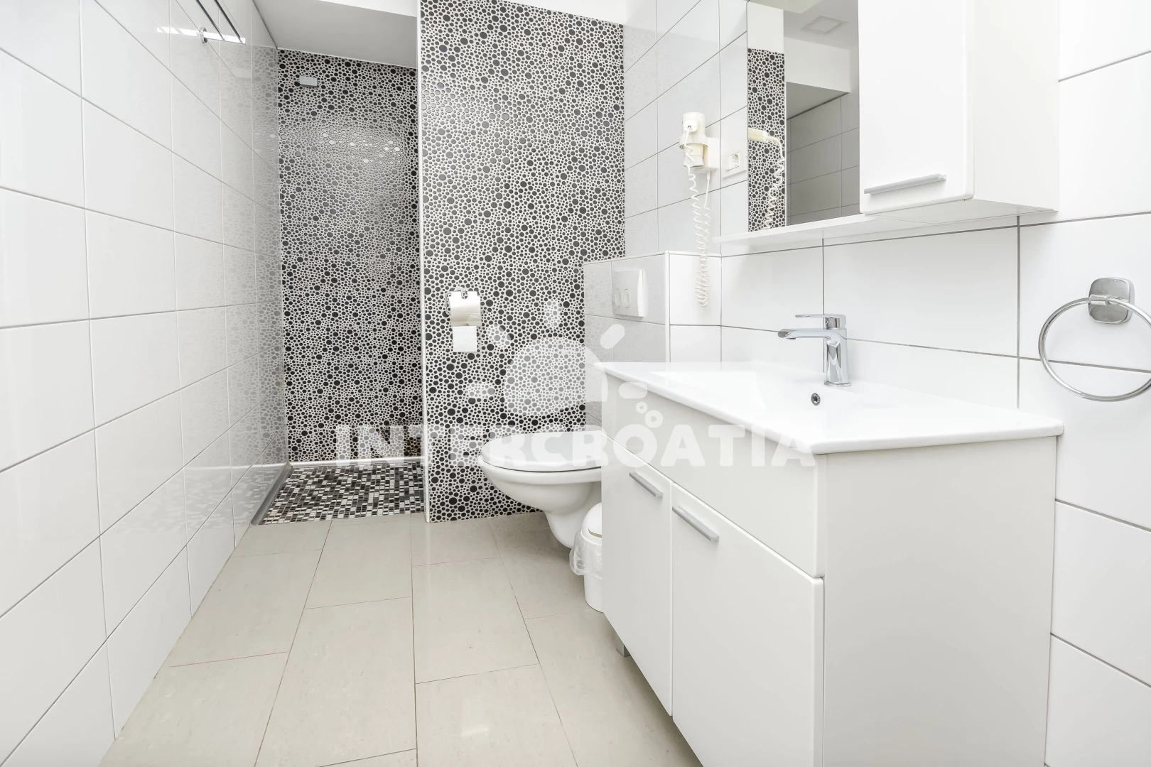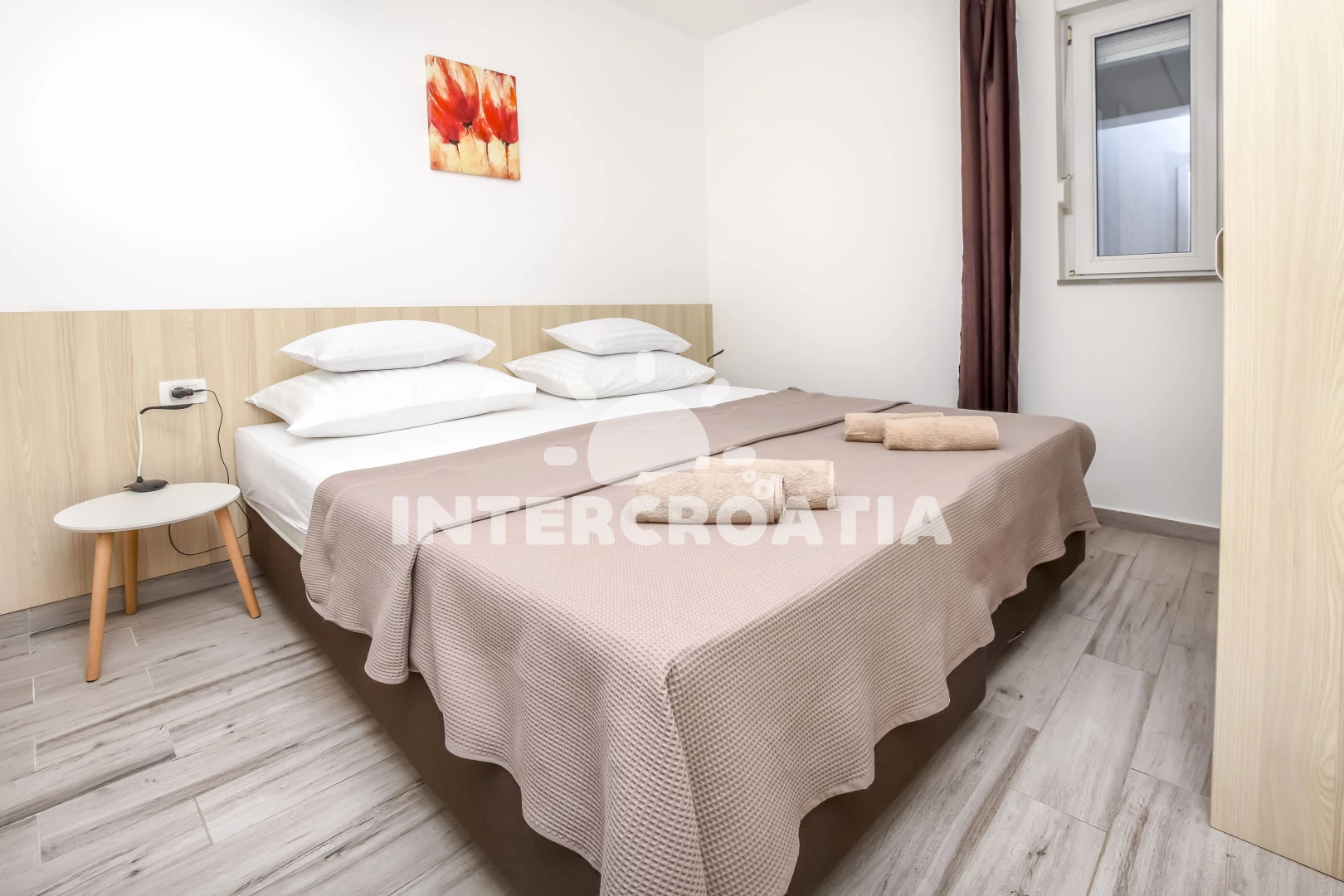 Apartmán (55 m2) s terasou, a výhledem na moře. Nachází se v přízemí objektu. Apartmán má 2 ložnice a je vhodný pro až 4 osoby. Kuchyňská linka je vybavena varnou deskou, troubou, kávovarem,…