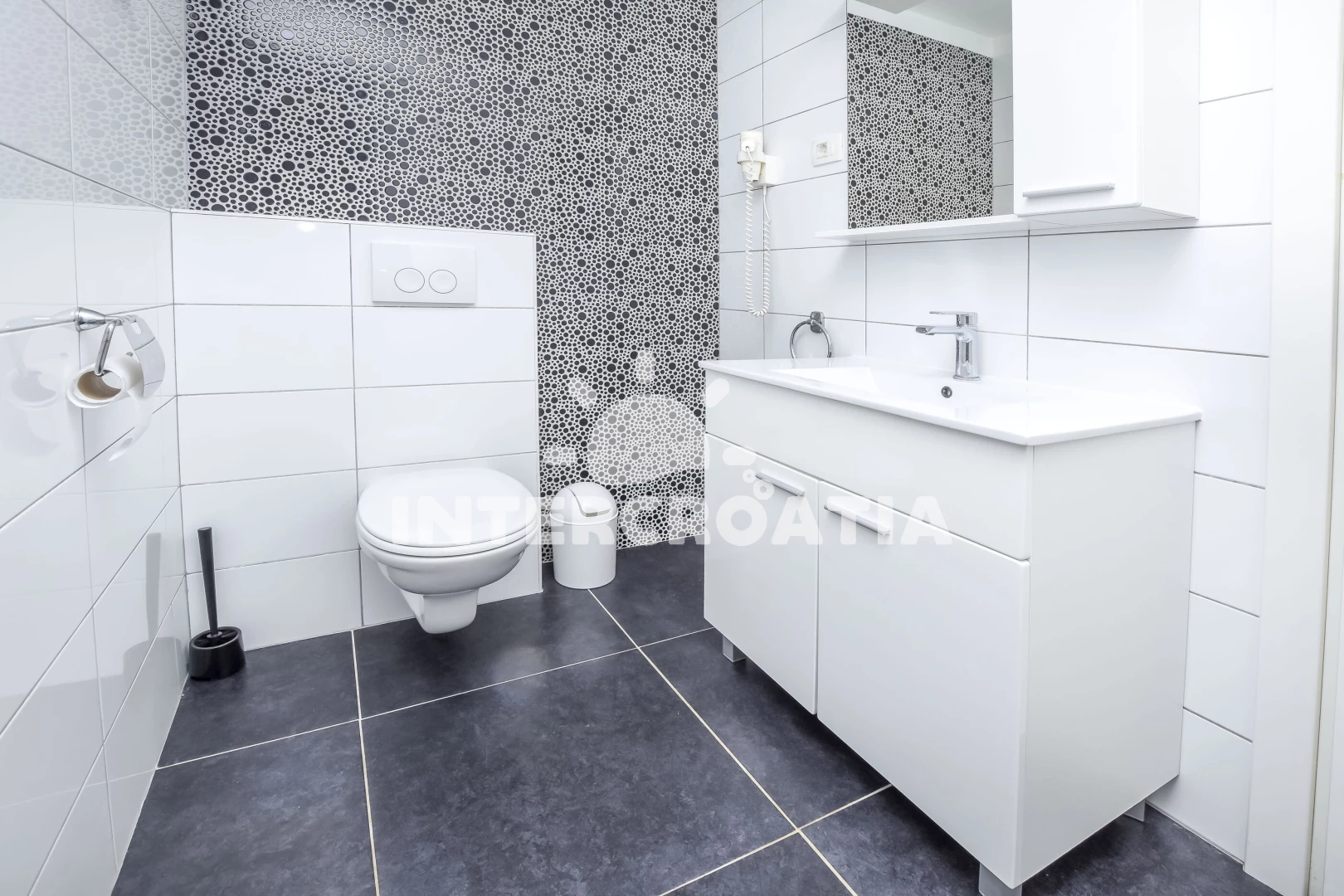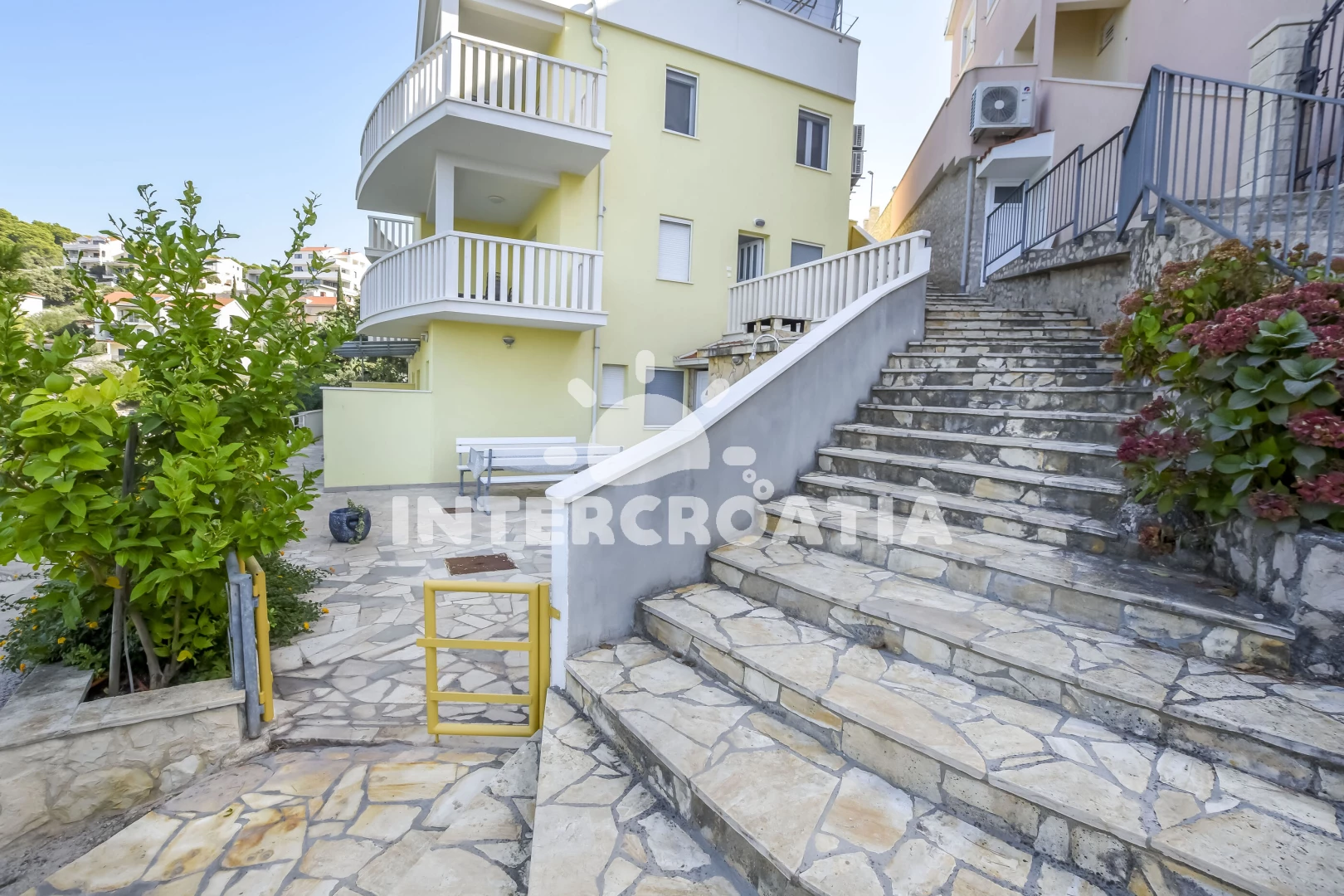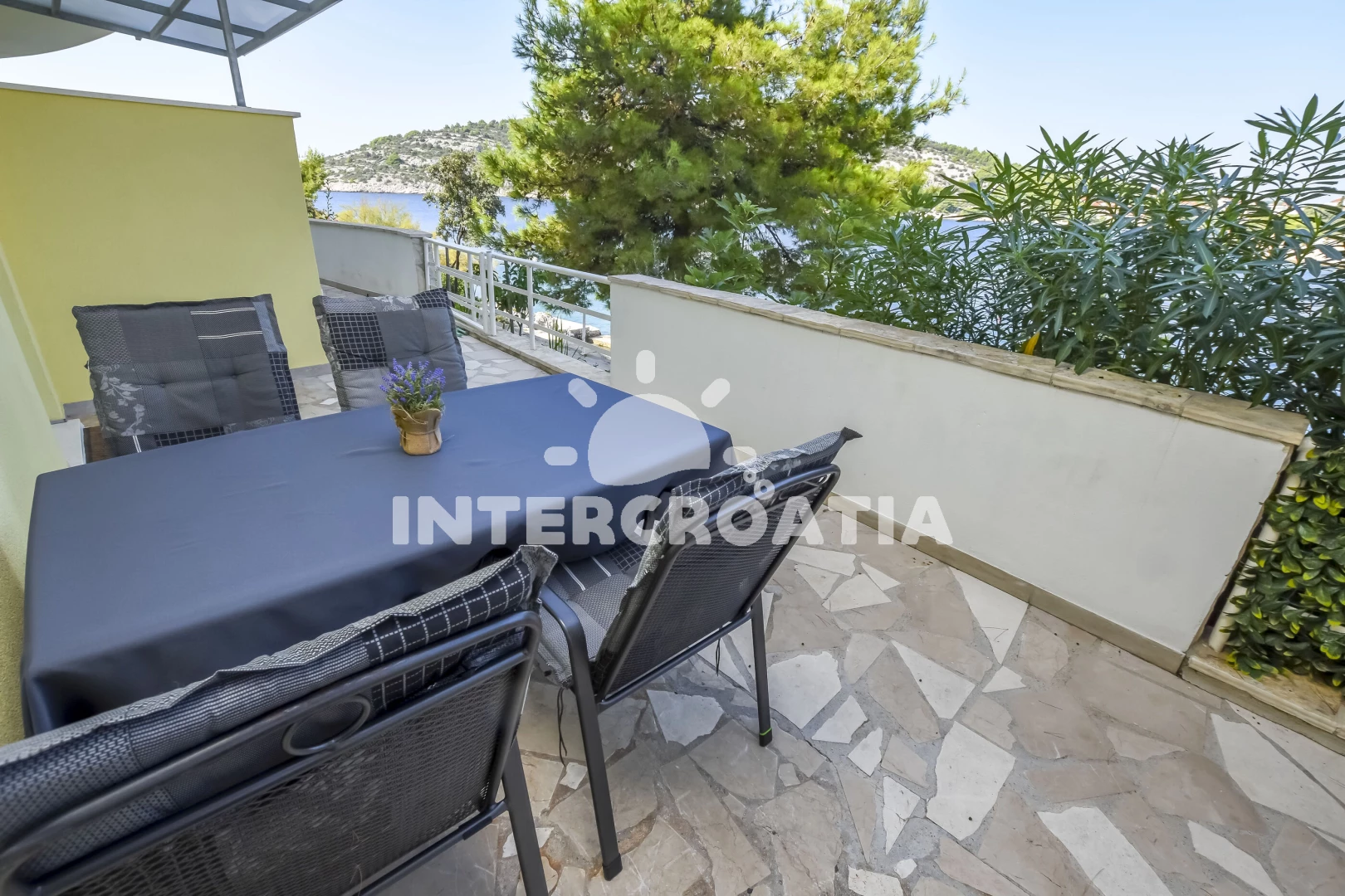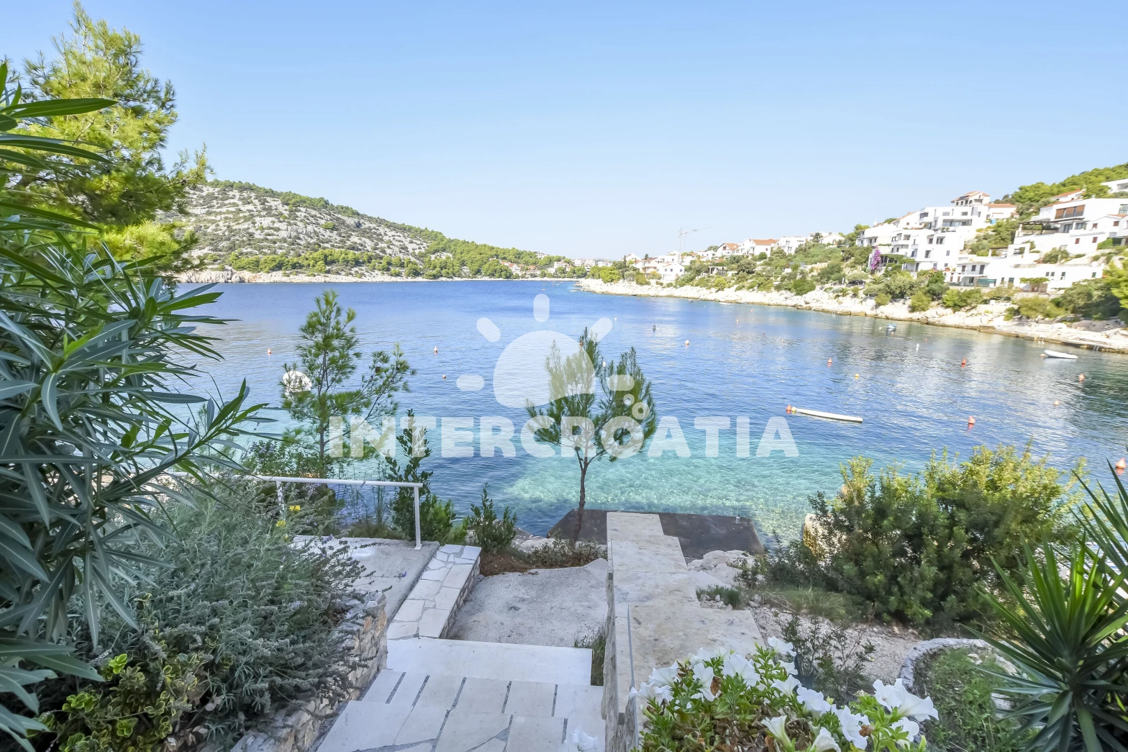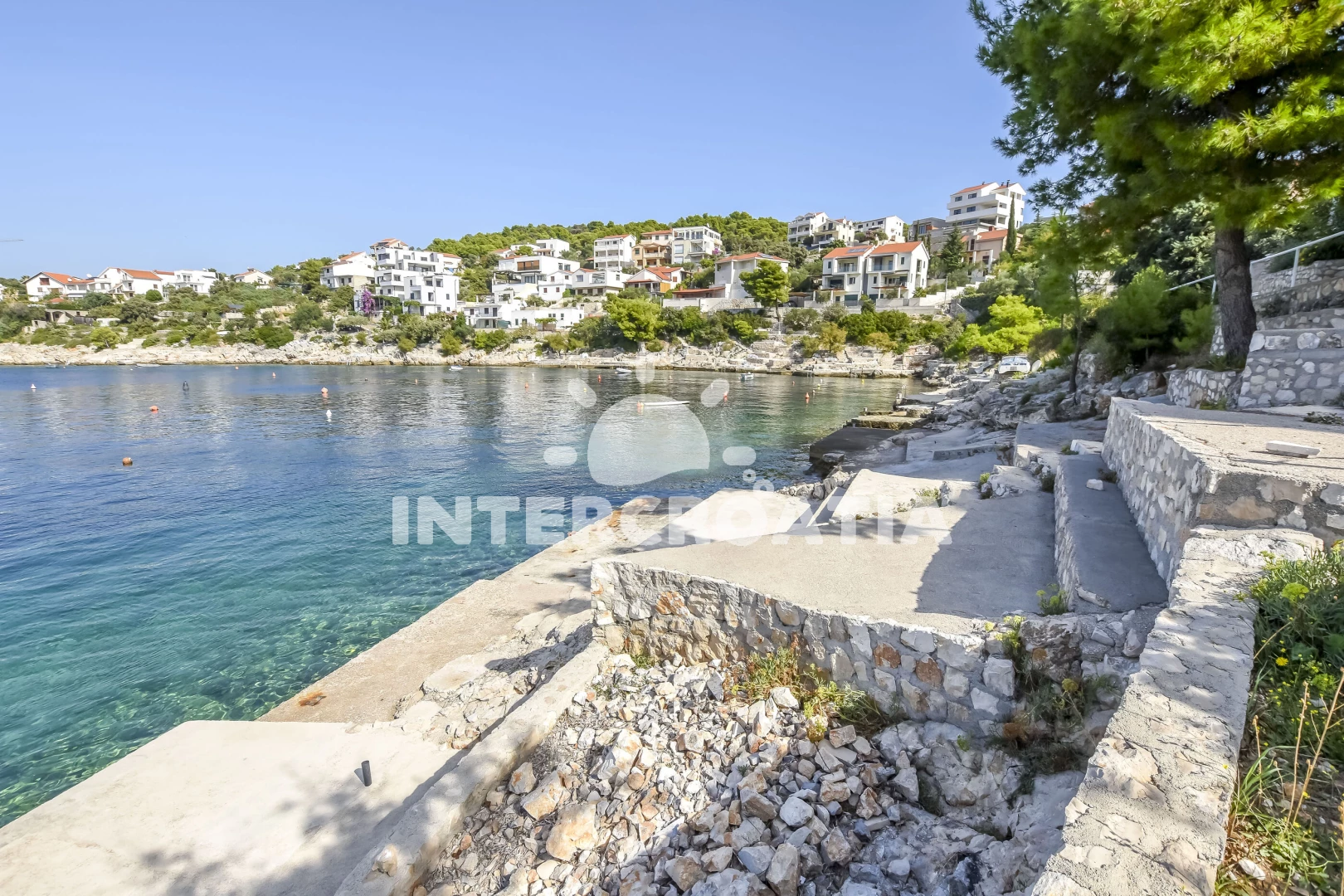 Vzdálenosti: Moře 10 m, pláž 10 m (betonové desky), kotviště pro čluny 10 m, restaurace 1 km, bar 1 km, centrum 1,2 km, supermarket 1,2 km, veřejná doprava 1,2 km, potápění 2 km, půjčovna motorových člunů 12 km, půjčovna kol 12 km, diskotéka 12 km, muzeum 12 km, marina 12 km, lékárna 12 km, ambulance 12 km, pošta 12 km, tenisové kurty 12 km, směnárna 12 km, banka 12 km, čerpací stanice 15 km, letiště (Split) 30 km, trajekt (Split) 50 km,