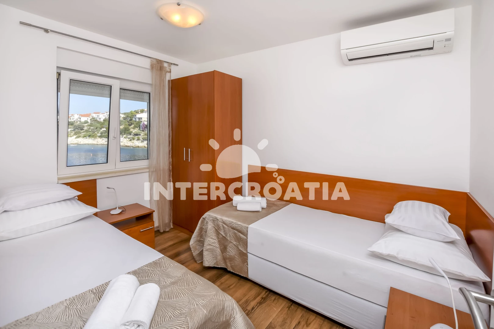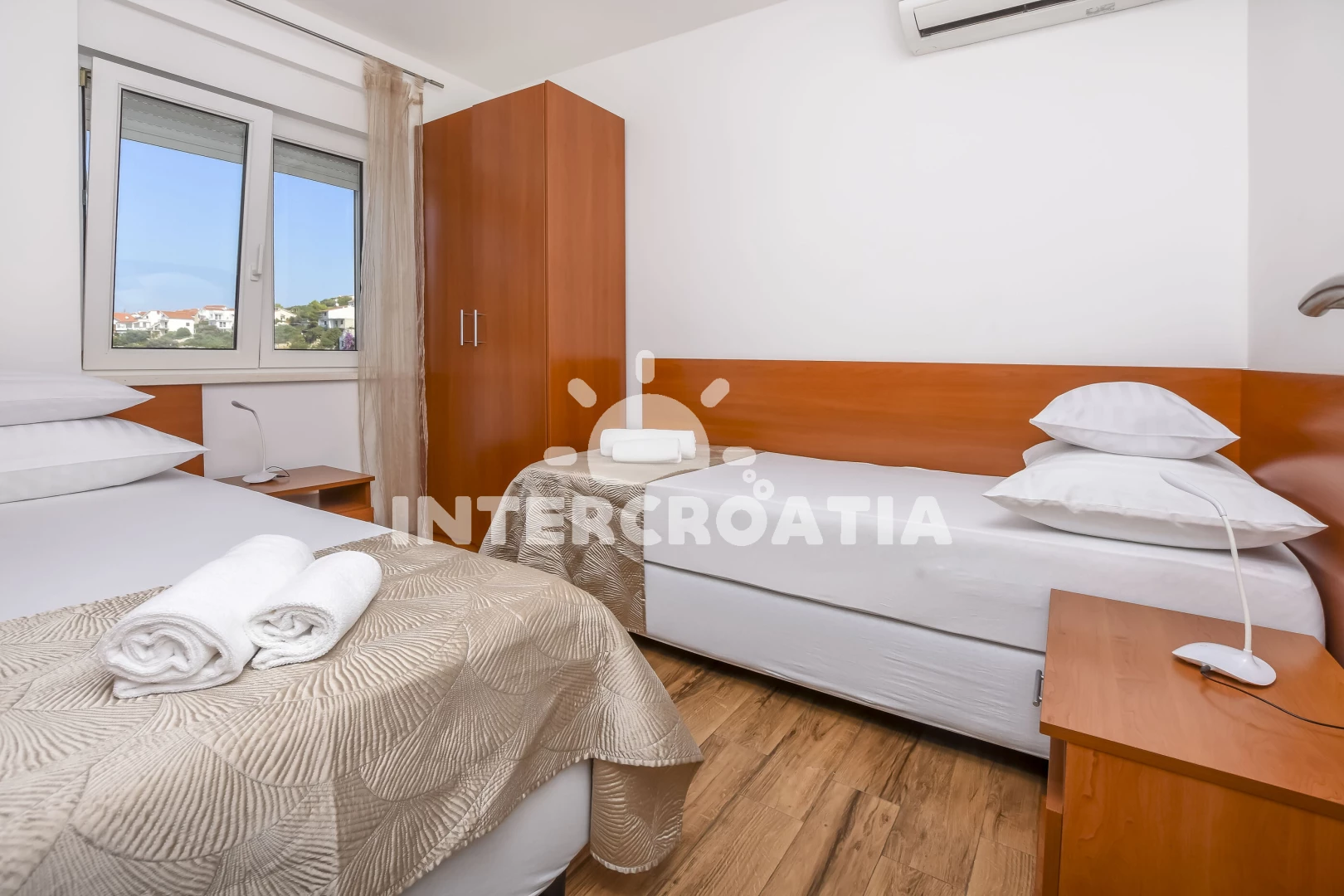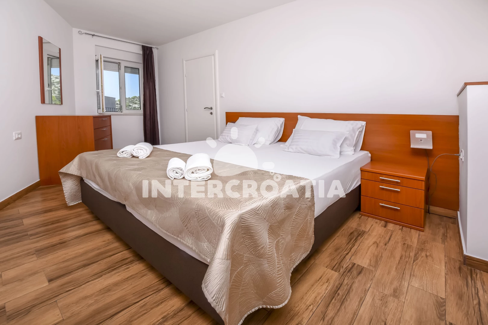 Apartmán (70 m2) s terasou, a výhledem na moře. Nachází se v 1. patře objektu. Apartmán má 2 ložnice a je vhodný pro až 5 osob. Kuchyňská linka je vybavena varnou deskou, troubou, kávovarem, myčkou…