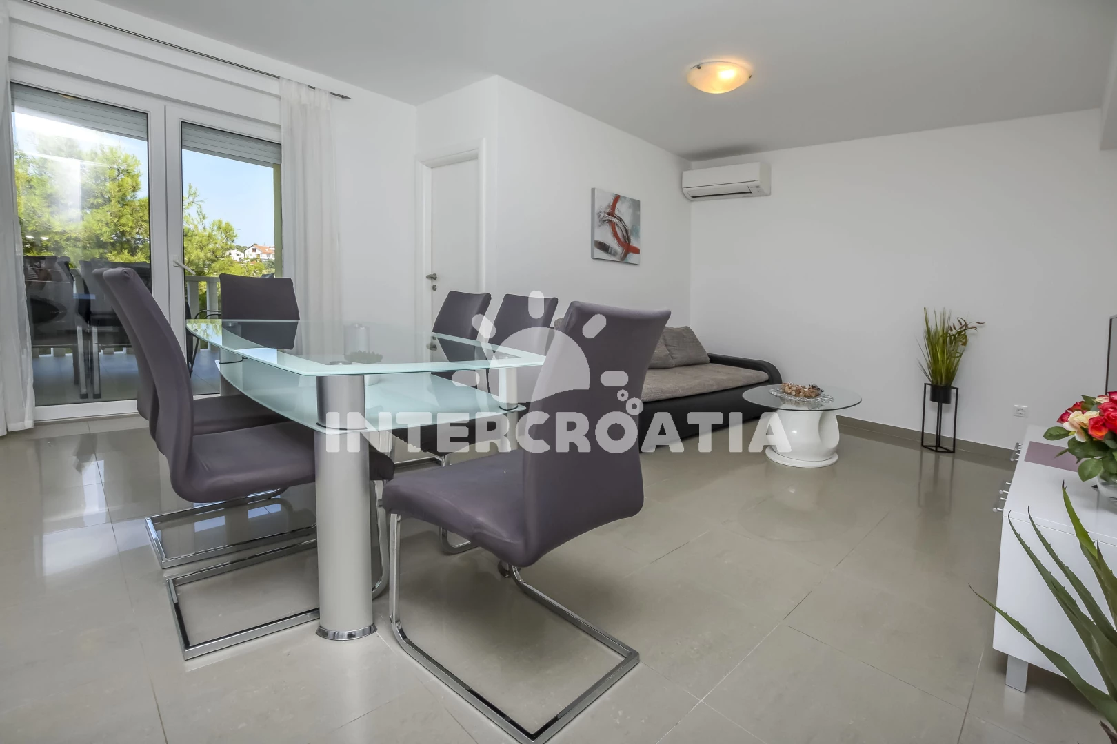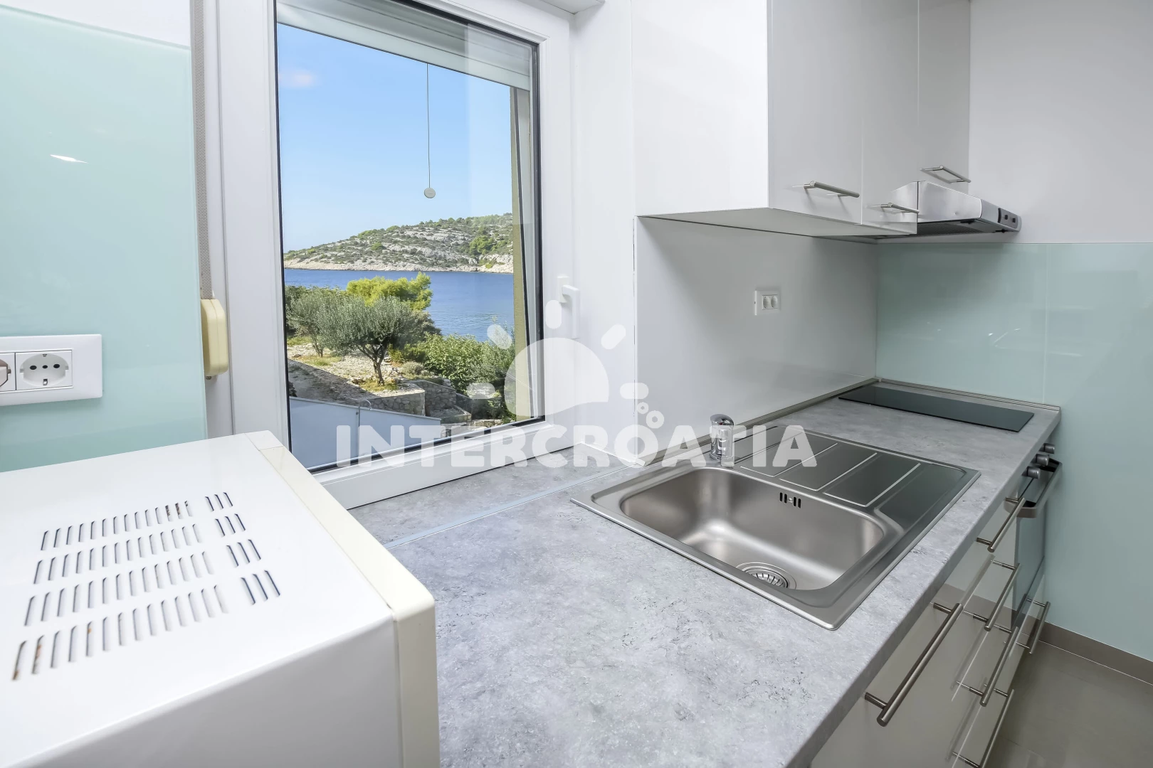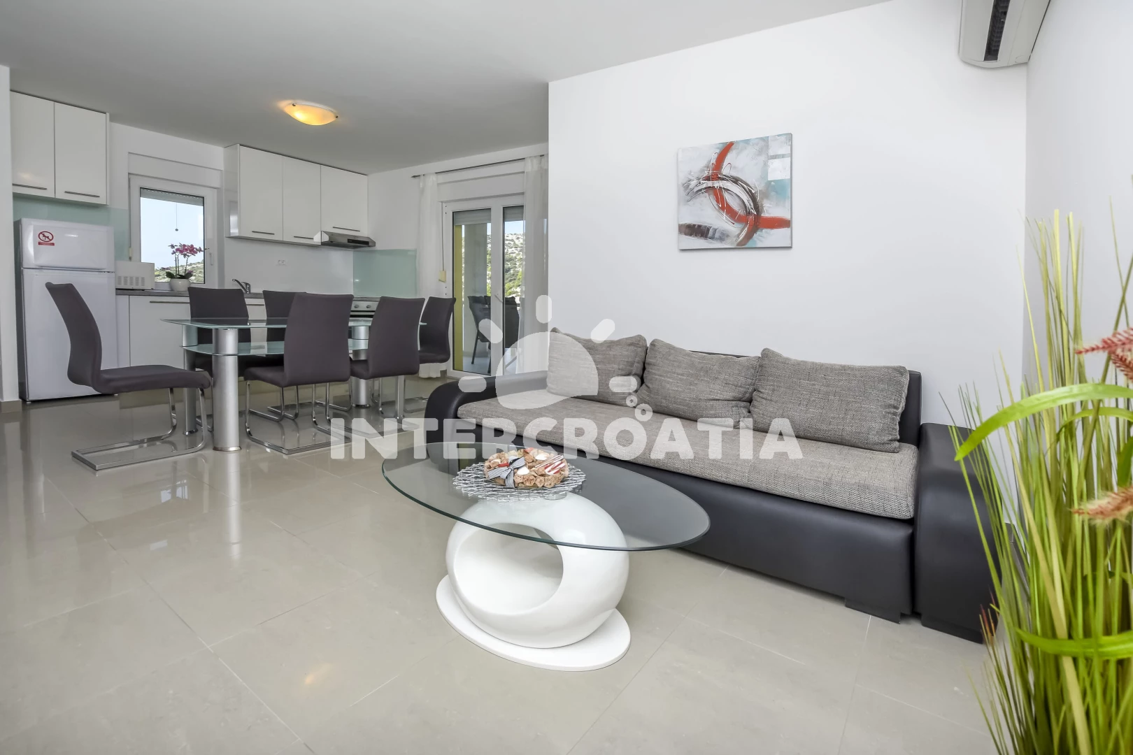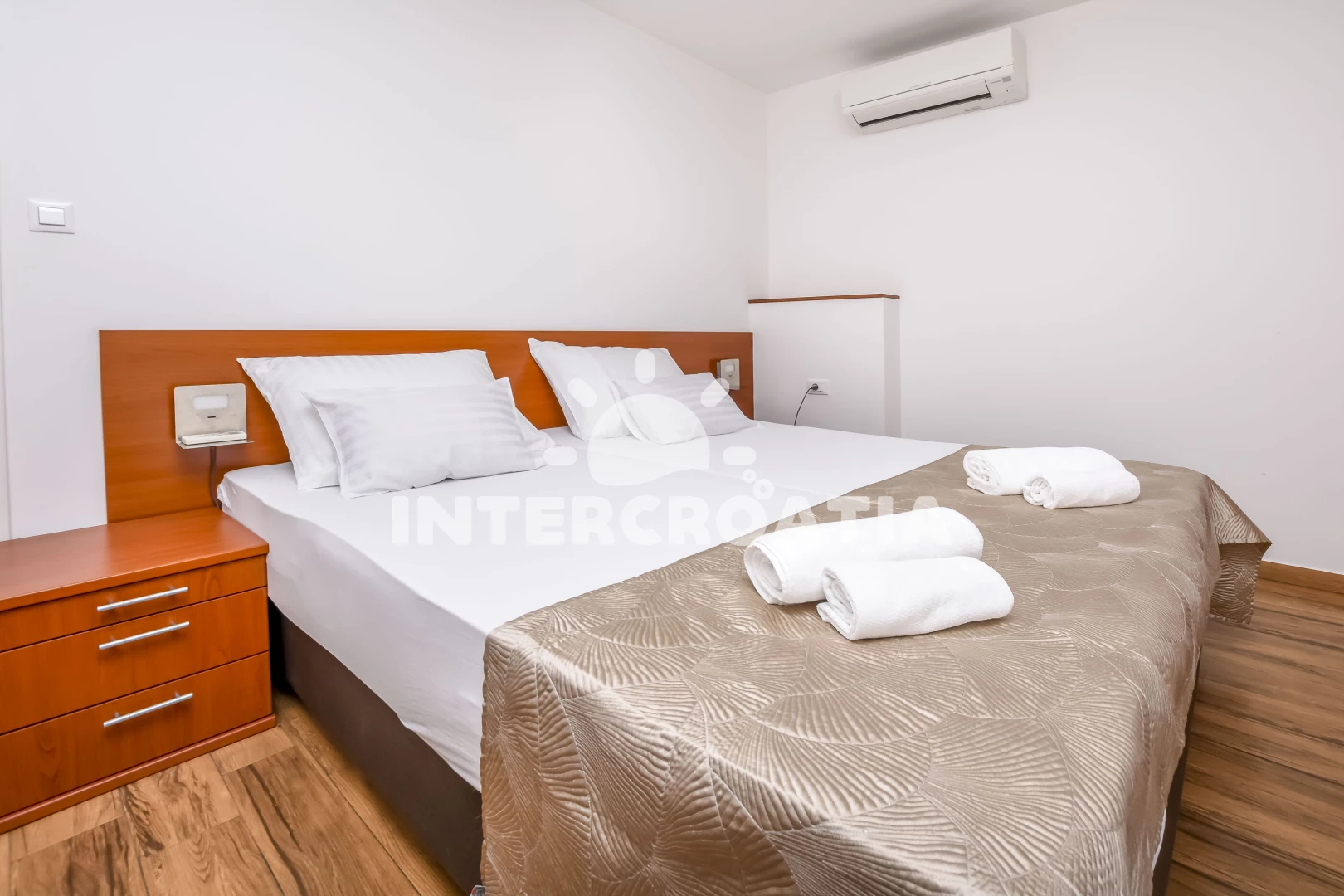 Apartmán (70 m2) s terasou, a výhledem na moře. Nachází se v 1. patře objektu. Apartmán má 2 ložnice a je vhodný pro až 5 osob. Kuchyňská linka je vybavena varnou deskou, troubou, kávovarem, myčkou…
