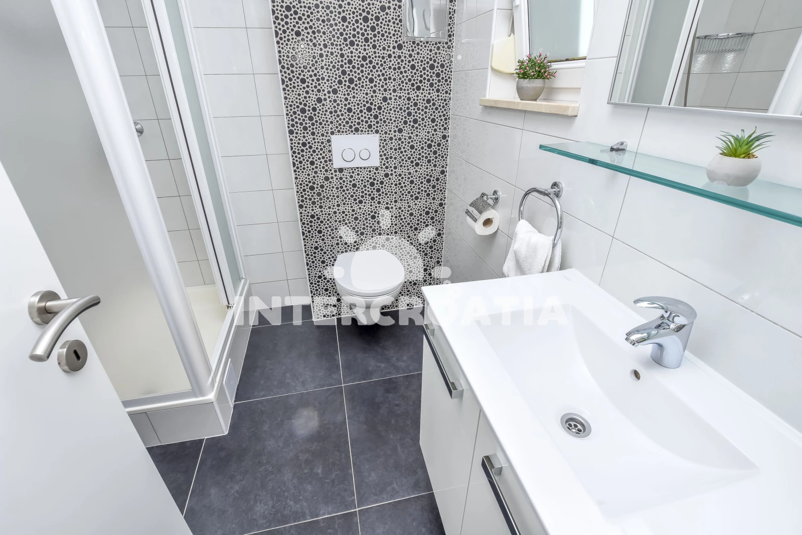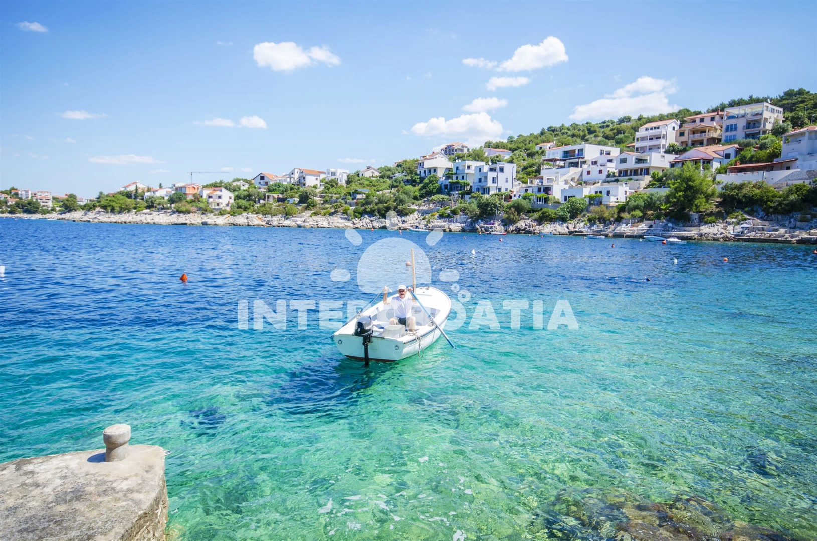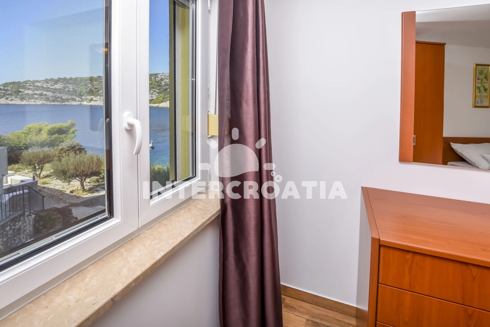 Vzdálenosti: Moře 10 m, pláž 10 m (betonové desky), kotviště pro čluny 10 m, restaurace 1 km, bar 1 km, centrum 1,2 km, supermarket 1,2 km, veřejná doprava 1,2 km, potápění 2 km, půjčovna motorových člunů 12 km, půjčovna kol 12 km, diskotéka 12 km, muzeum 12 km, marina 12 km, lékárna 12 km, ambulance 12 km, pošta 12 km, tenisové kurty 12 km, směnárna 12 km, banka 12 km, čerpací stanice 15 km, letiště (Split) 30 km, trajekt (Split) 50 km,