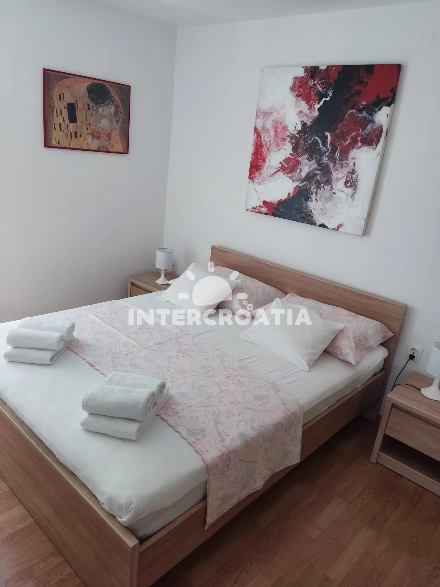 Apartmán se nachází 200 m od moře a pláže. Pláž je skalnatá, oblázková a betonové desky. U objektu je k dispozici společná zahrada s posezením a grilem. Parkování je před domem.