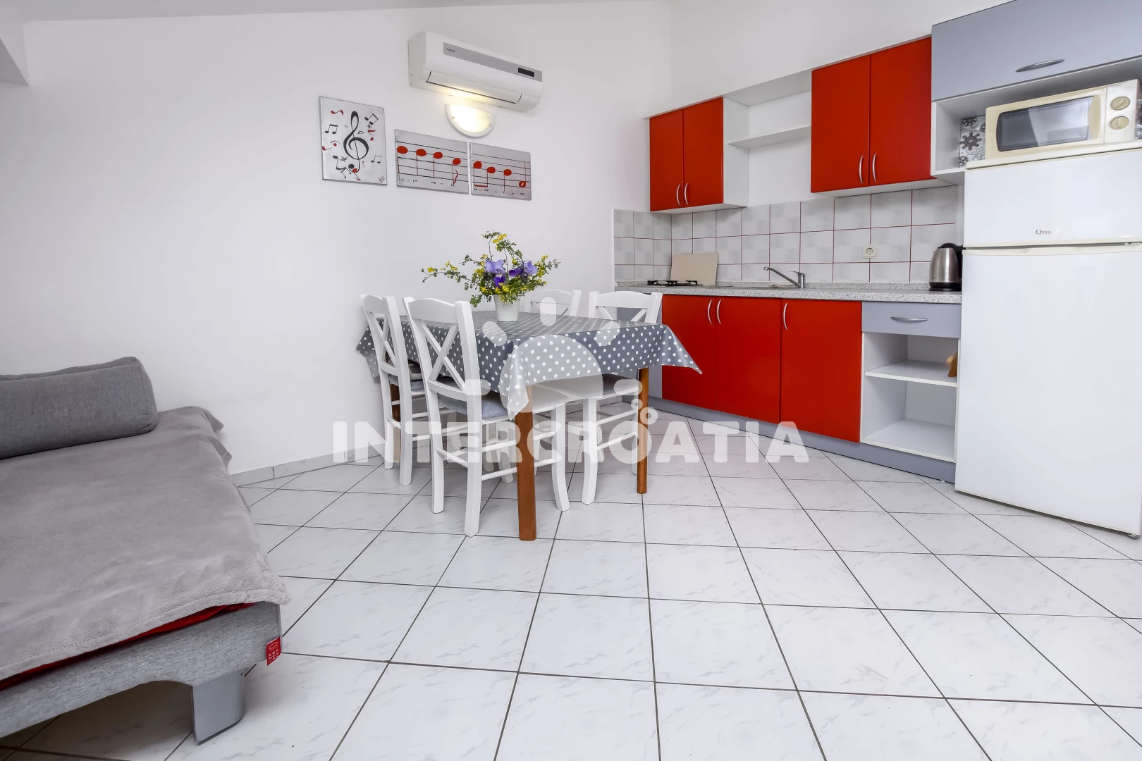 Apartmán (30 m2) s balkonem, a výhledem na moře. Nachází se ve 2. patře objektu. Apartmán má 1 ložnici a je vhodný pro až 2 osoby. Kuchyňská linka je vybavena varnou deskou, mikrovlnnou troubou,… Více informací