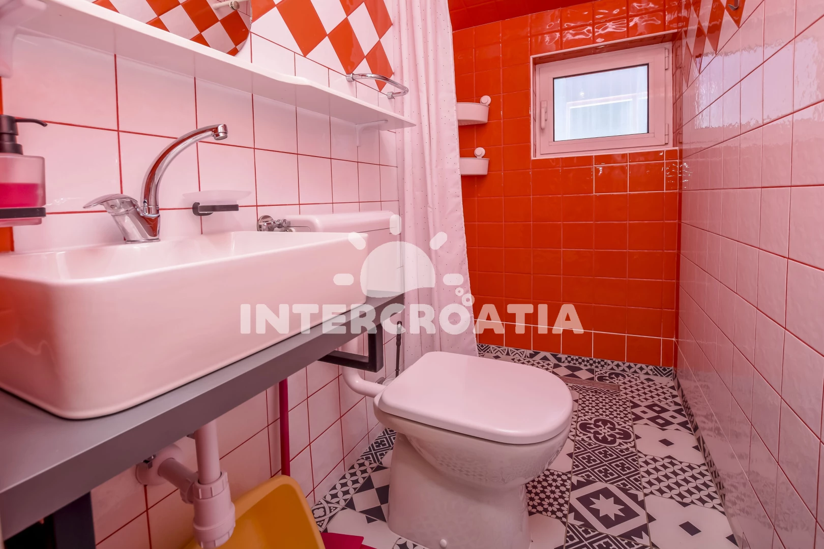 Vzdálenosti: Moře 200 m, pláž 200 m (oblázková a betonové desky), supermarket 700 m, centrum 700 m, restaurace 700 m, bar 700 m, veřejná doprava 3 km, pošta 5 km, ambulance 5 km, lékárna 5 km, banka 13 km, čerpací stanice 13 km, letiště (Split) 40 km, trajekt (Šibenik) 45 km,