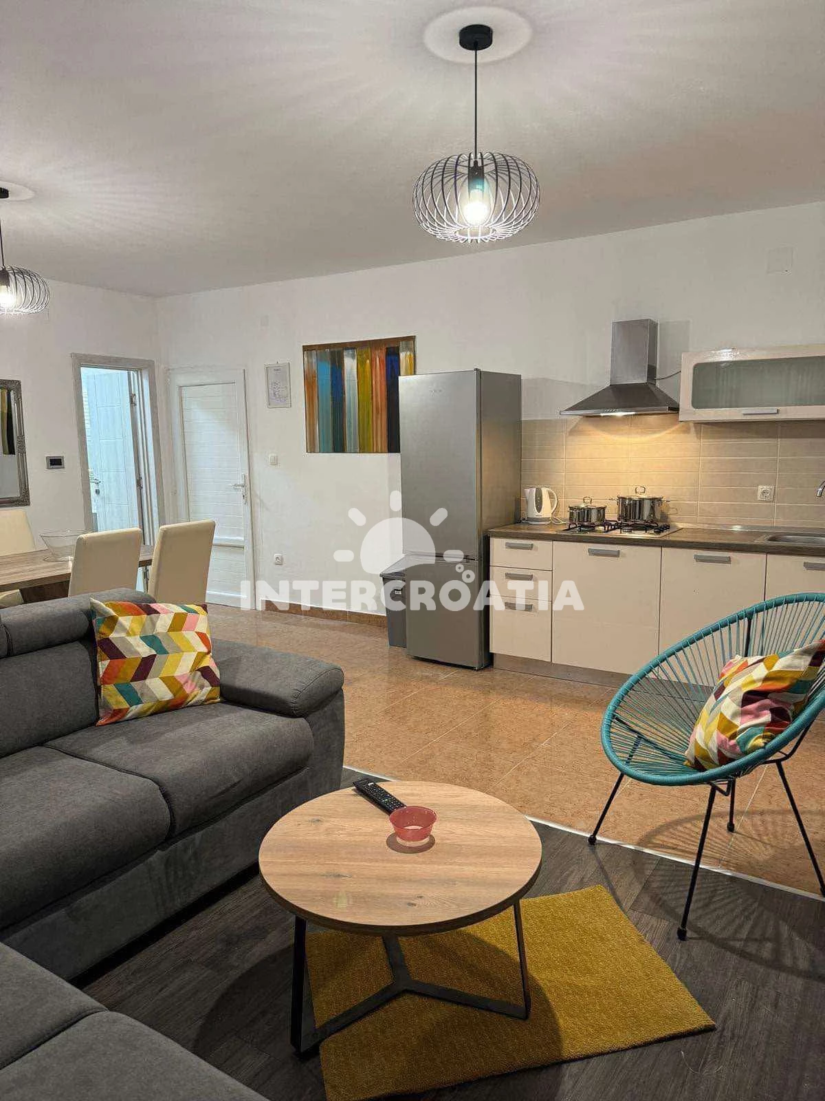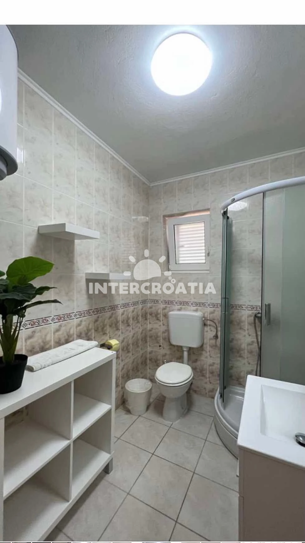 Vzdálenosti: Moře 100 m, pláž 100 m (oblázková a betonové desky), restaurace 150 m, směnárna 2 km, supermarket 2 km, bar 2 km, půjčovna kol 2 km, centrum 2 km, lékárna 2 km, veřejná doprava 2,5 km, pošta 2,5 km, ambulance 2,5 km, banka 7 km, čerpací stanice 7 km, letiště (Split) 30 km, trajekt (Šibenik) 35 km,