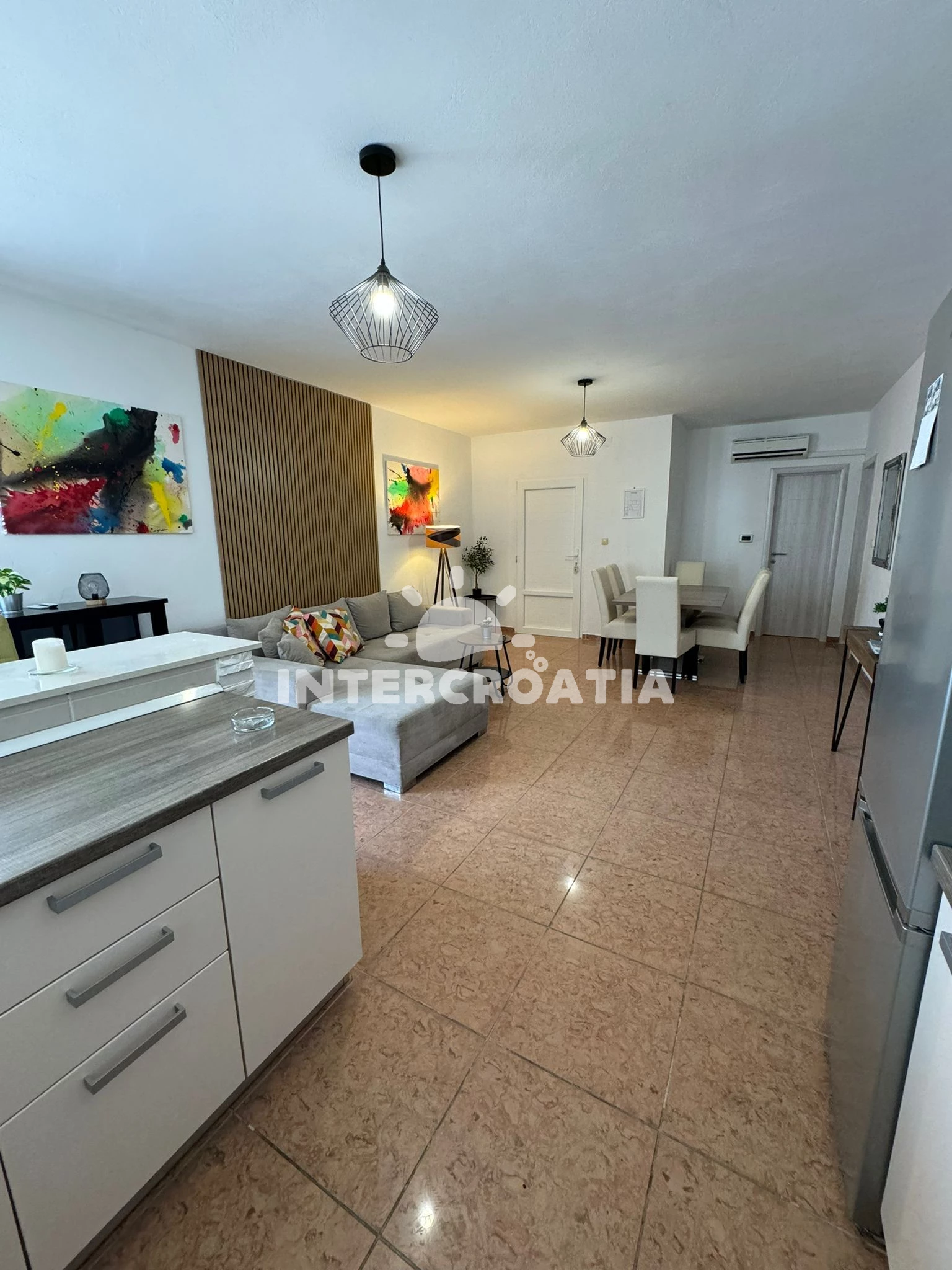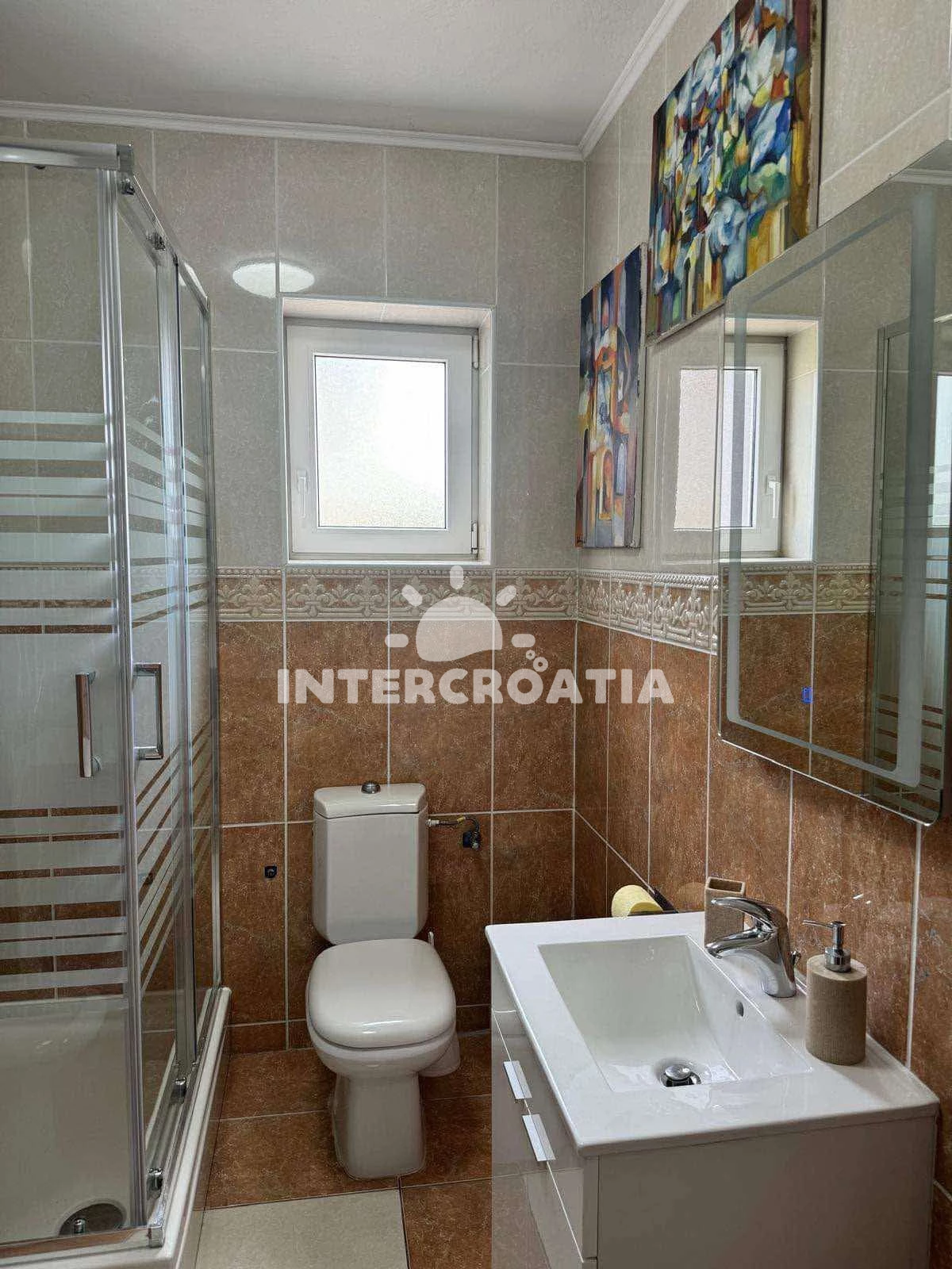 Vzdálenosti: Moře 100 m, pláž 100 m (oblázková a betonové desky), restaurace 150 m, směnárna 2 km, supermarket 2 km, bar 2 km, půjčovna kol 2 km, centrum 2 km, lékárna 2 km, veřejná doprava 2,5 km, pošta 2,5 km, ambulance 2,5 km, banka 7 km, čerpací stanice 7 km, letiště (Split) 30 km, trajekt (Šibenik) 35 km,