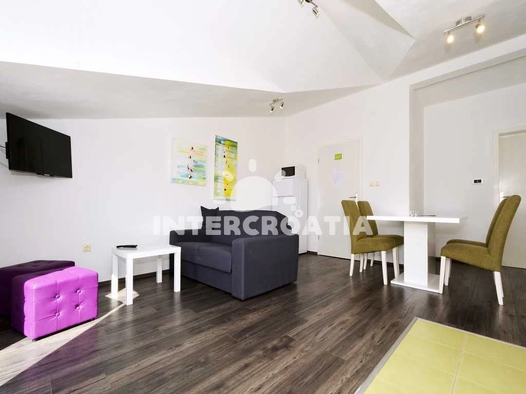 Vzdálenosti: Moře 100 m, pláž 100 m (oblázková a betonové desky), restaurace 150 m, směnárna 2 km, supermarket 2 km, bar 2 km, půjčovna kol 2 km, centrum 2 km, lékárna 2 km, veřejná doprava 2,5 km, pošta 2,5 km, ambulance 2,5 km, banka 7 km, čerpací stanice 7 km, letiště (Split) 30 km, trajekt (Šibenik) 35 km,