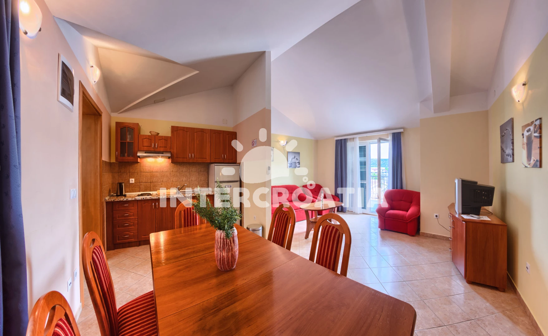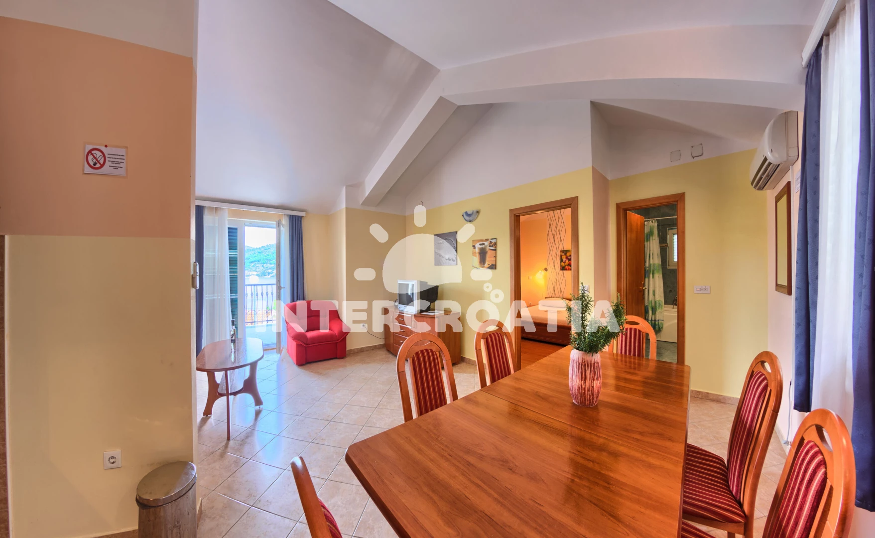 Apartmán (75 m2) s terasou, a výhledem na moře. Nachází se v 1. patře objektu. Apartmán má 1 ložnici a je vhodný pro až 2 osoby. Kuchyňská linka je vybavena varnou deskou, kávovarem, mikrovlnnou…