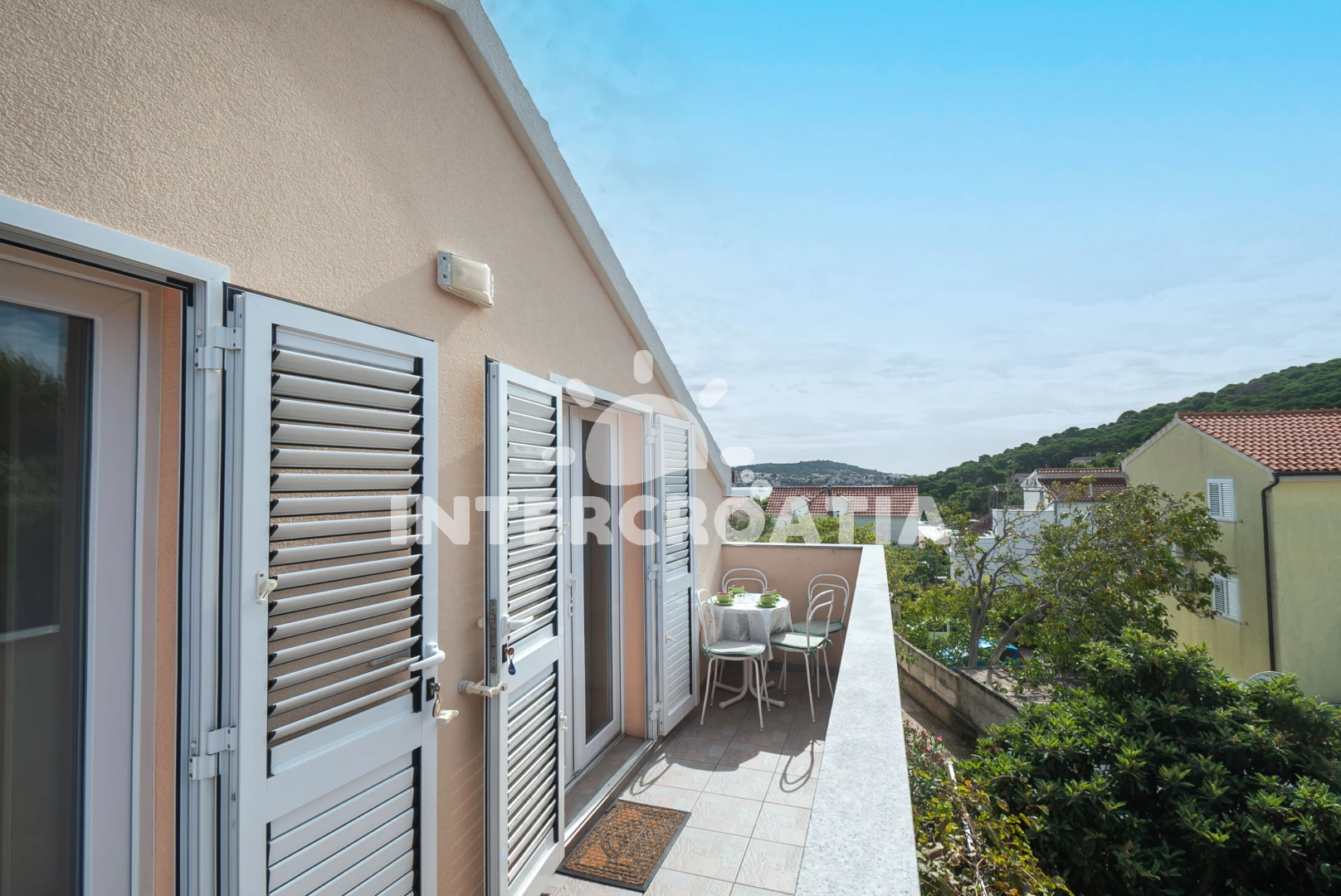 Vzdálenosti: Moře 50 m, pláž 50 m (oblázky), bar 50 m, restaurace 50 m, centrum 300 m, supermarket 400 m, ambulance 500 m, pošta 500 m, směnárna 700 m, marina 900 m, veřejná doprava 1 km, lékárna 1 km, čerpací stanice 9,8 km, banka 10 km, letiště (Split) 34 km, trajekt (Šibenik) 36 km,