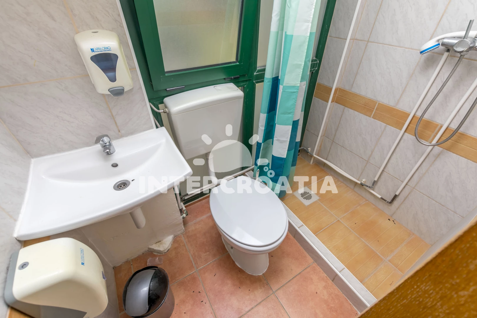 Vzdálenosti: Moře 15 m, pláž 15 m (oblázková a betonové desky), bar 10 m, restaurace 10 m, centrum 300 m, supermarket 300 m, veřejná doprava 300 m, lékárna 300 m, ambulance 300 m, banka 300 m, pošta 300 m, marina 1 km, čerpací stanice 6 km, trajekt (Šibenik) 33 km, letiště (Split) 34 km,