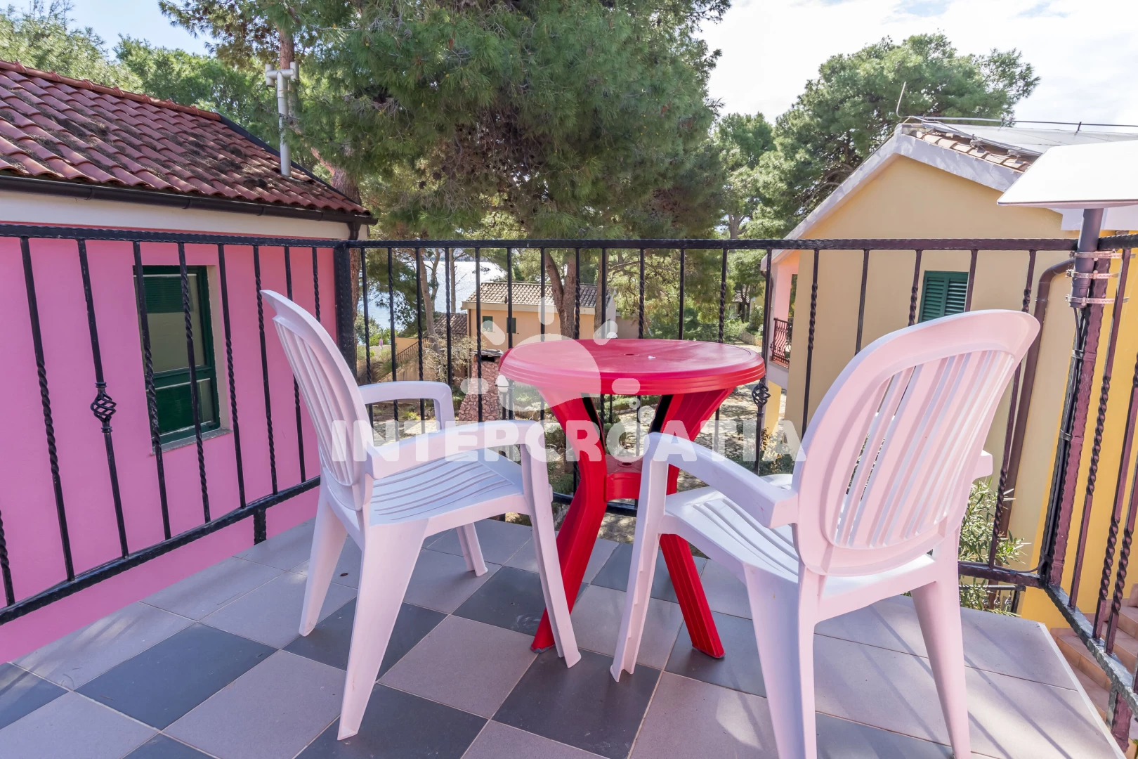 Apartmán se nachází 15 m od moře a pláže. Pláž je oblázková a betonové desky. U objektu je k dispozici společná zahrada s posezením a grilem. Parkování je 50m - 150 m od domu.