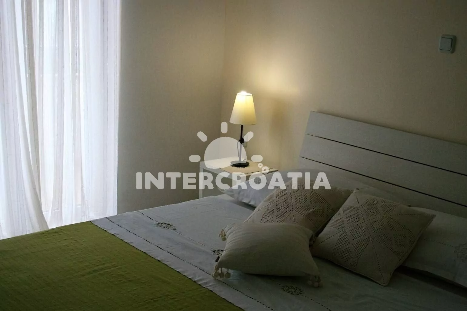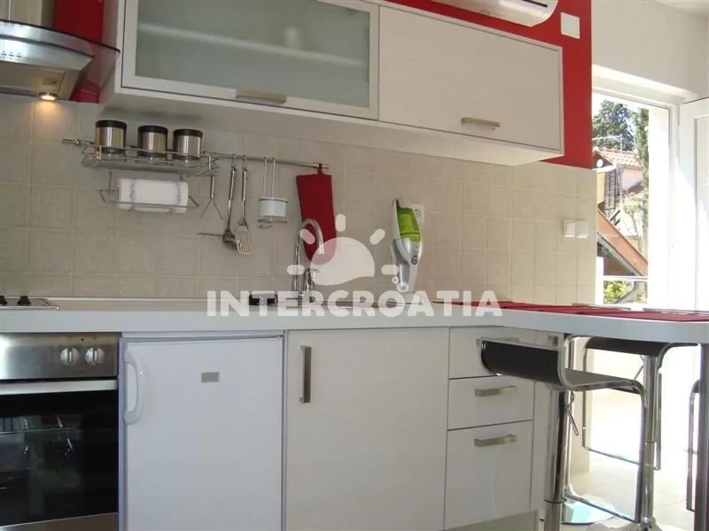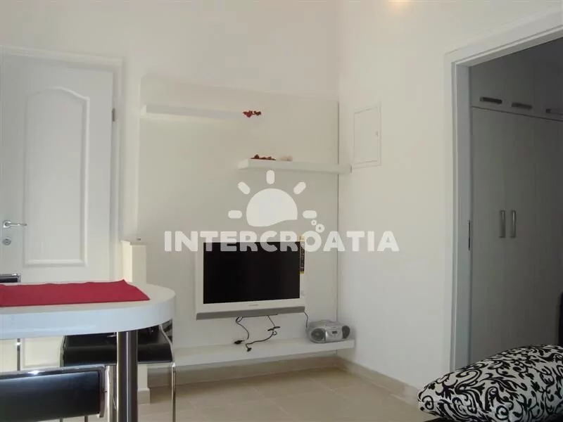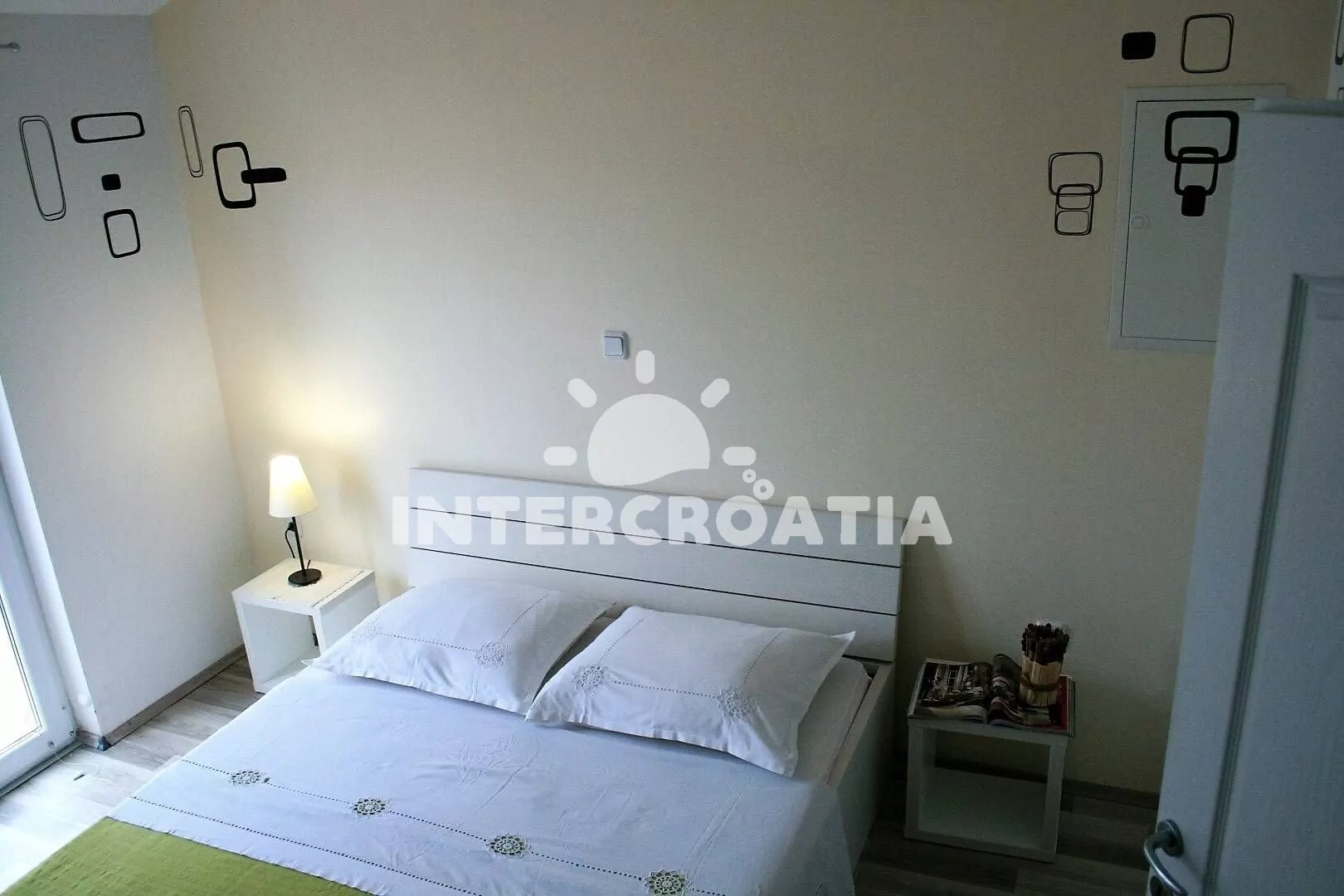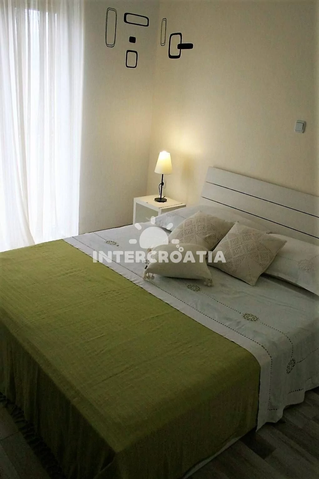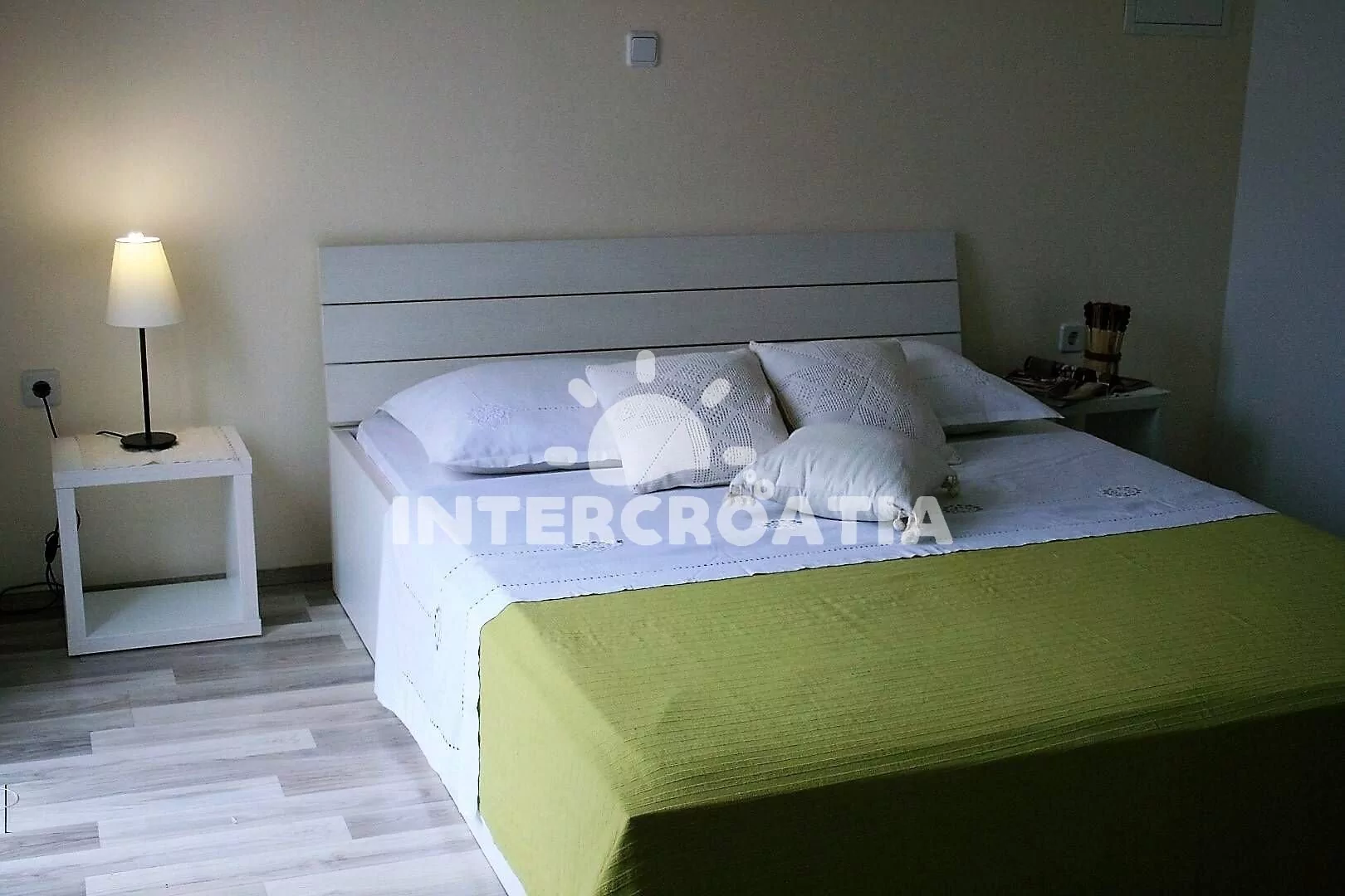 Apartmán (45 m2) s balkonem, posezením a výhledem na moře se nachází v 1. patře domu. Apartmán má 1 ložnici a je vhodný pro 2 až 4 osoby. Obývací pokoj je spojený s kuchyní. Kuchyňská linka je vybavena dvouplotýnkovým vařičem, digestoří, vestavěnou troubou, rychlovarnou konvicí, nádobím a lednicí s mrazákem. Obývací pokoj s jídelním stolem, pohovkou (rozložitelná na extra lůžko pro 2 osoby), televizí se satelitním programem, klimatizací a vstupem na balkon. Ložnice s dvoulůžkem a vstupem na balkon. Koupelna se sprchovým koutem, umyvadlem, fénem a wc. Hostům je k dispozici parkování u objektu zdarma.