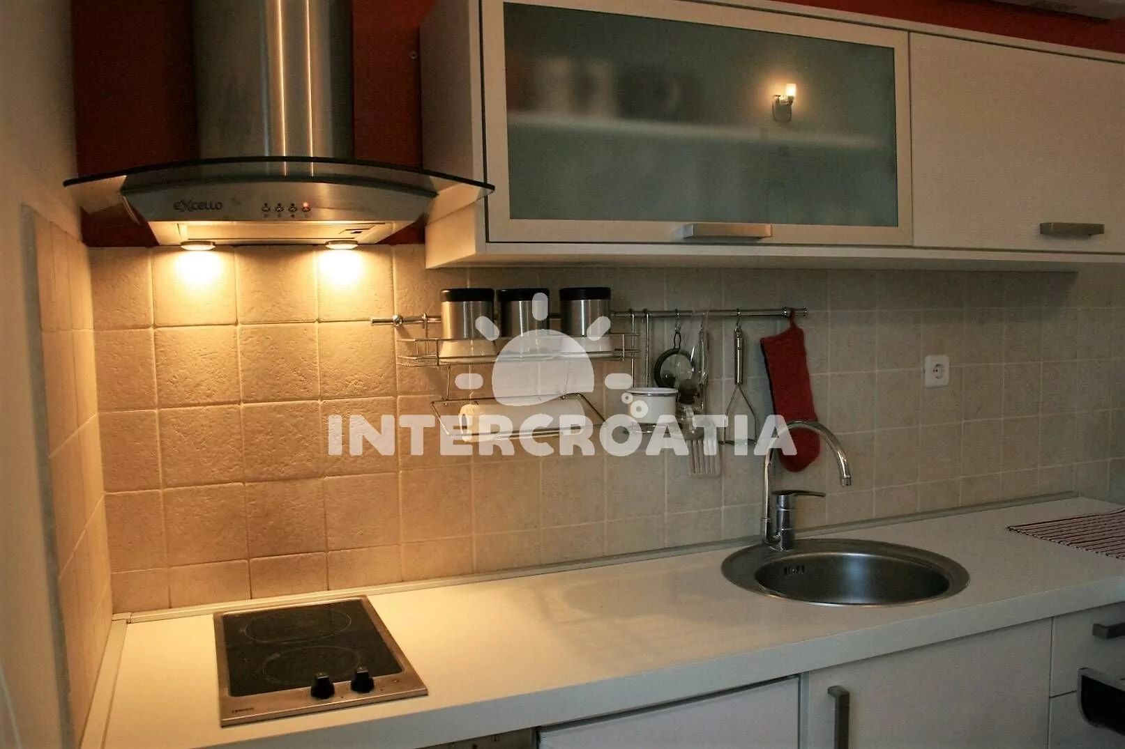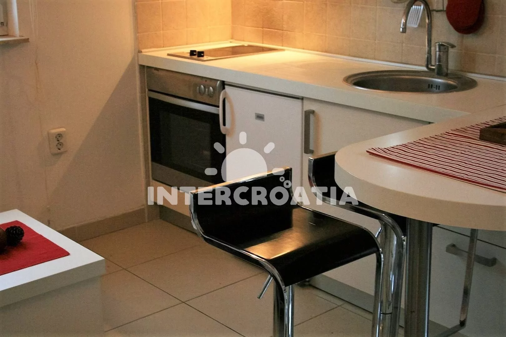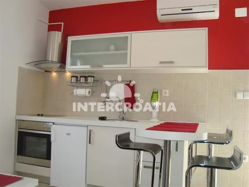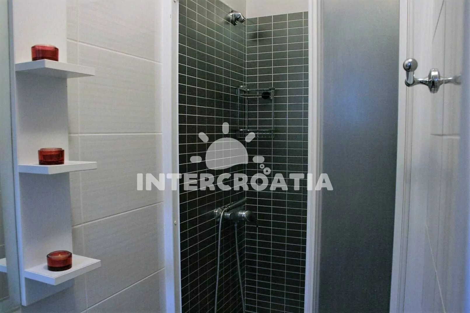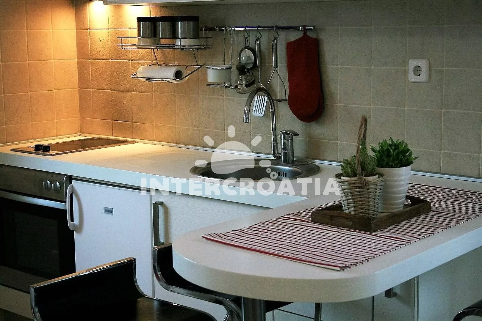 Apartmán (45 m2) s balkonem, posezením a výhledem na moře se nachází v 1. patře domu. Apartmán má 1 ložnici a je vhodný pro 2 až 4 osoby. Obývací pokoj je spojený s kuchyní. Kuchyňská linka je vybavena dvouplotýnkovým vařičem, digestoří, vestavěnou troubou, rychlovarnou konvicí, nádobím a lednicí s mrazákem. Obývací pokoj s jídelním stolem, pohovkou (rozložitelná na extra lůžko pro 2 osoby), televizí se satelitním programem, klimatizací a vstupem na balkon. Ložnice s dvoulůžkem a vstupem na balkon. Koupelna se sprchovým koutem, umyvadlem, fénem a wc. Hostům je k dispozici parkování u objektu zdarma.