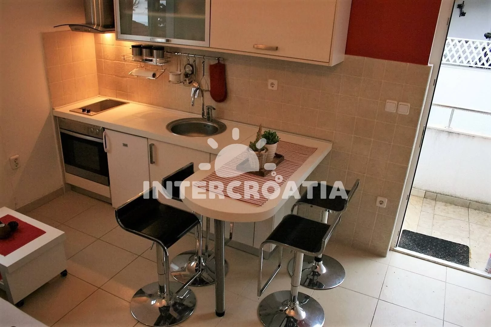Vzdálenosti: Moře a pláž 10 m, supermarket 800 m, centrum, restaurace, bar a směnárna 1,2 km, veřejná doprava 1,5 km, pošta, ambulance, lékárna a pošta 2 km, banka a čerpací stanice 8 km, letiště (Split) 30 km, trajekt (Šibenik) 35 km.