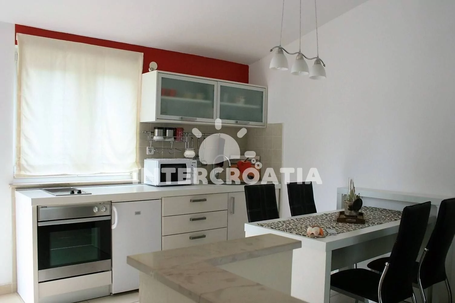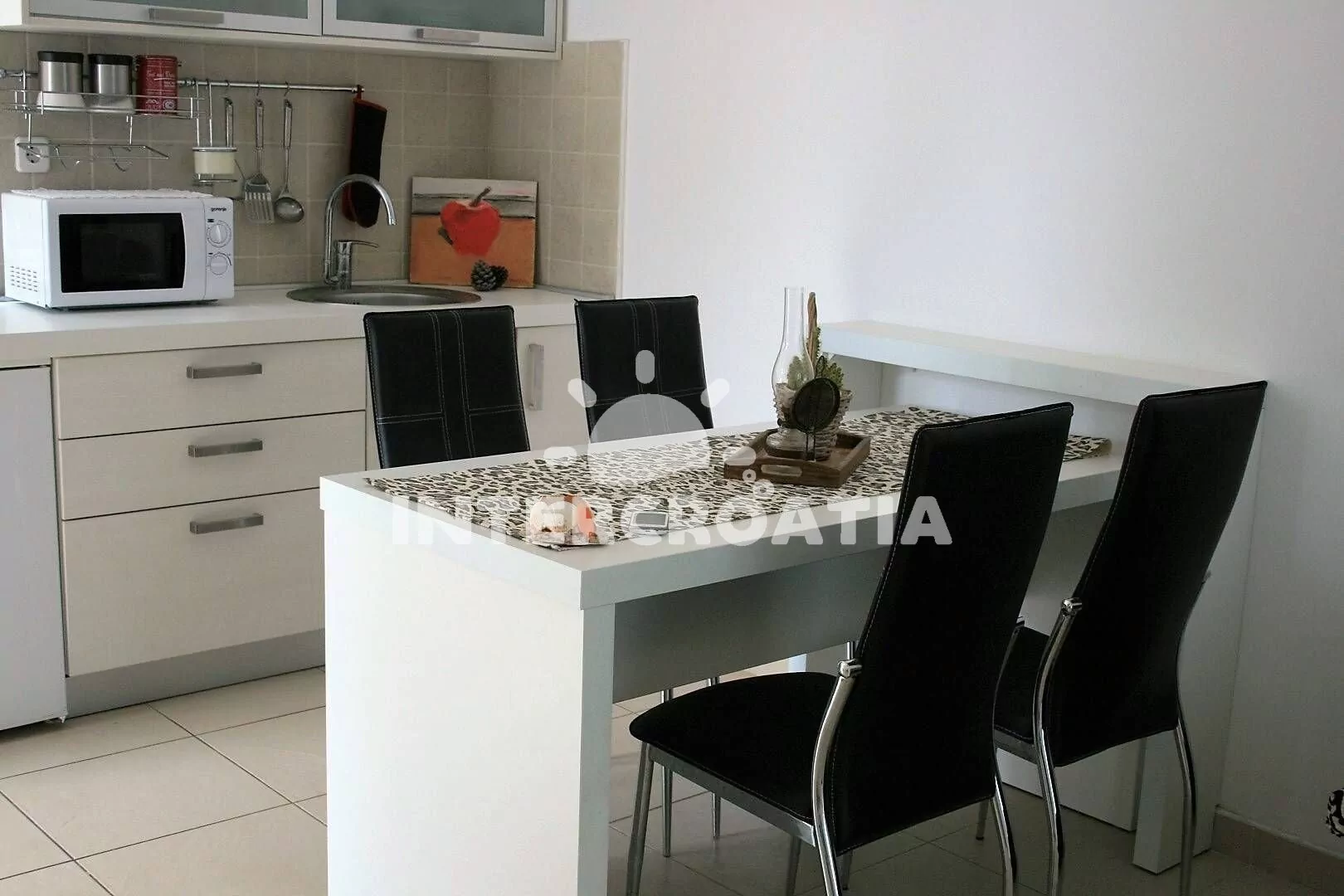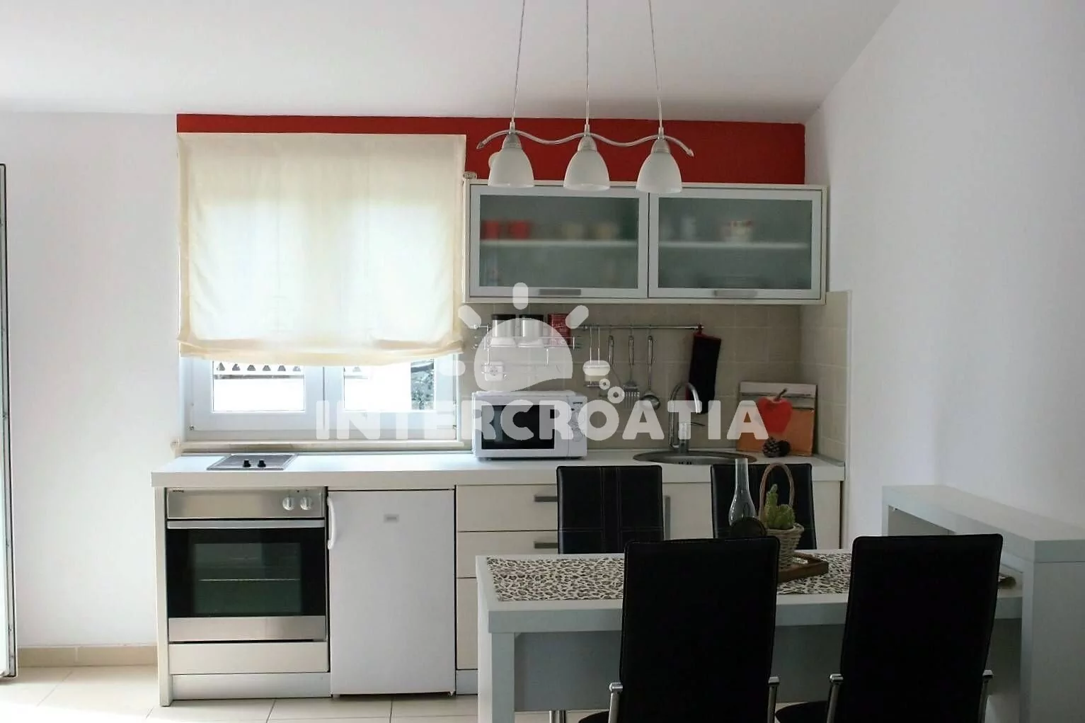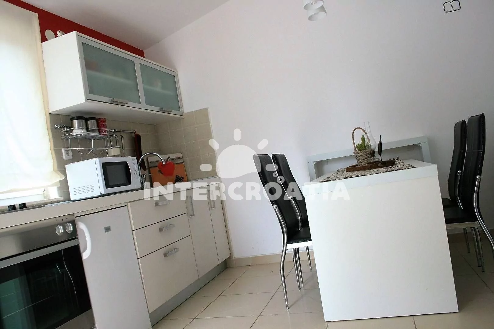 Apartmán (45 m2) s balkonem, posezením a výhledem na moře se nachází v 1. patře domu. Apartmán má 1 ložnici a je vhodný pro 2 až 4 osoby. Obývací pokoj je spojený s kuchyní. Kuchyňská linka je vybavena dvouplotýnkovým vařičem, vestavěnou troubou, rychlovarnou konvicí, mikrovlnnou troubou, kávovarem, nádobím a lednicí s mrazákem. Obývací pokoj s jídelním stolem, pohovkou (rozložitelná na extra lůžko pro 2 osoby), televizí se satelitním programem, klimatizací a vstupem na balkon. Ložnice s jedním dvoulůžkem. Koupelna se sprchovým koutem, umyvadlem, fénem a wc. Hostům je k dispozici parkování u objektu zdarma.