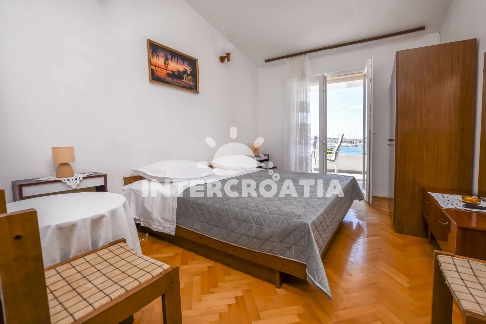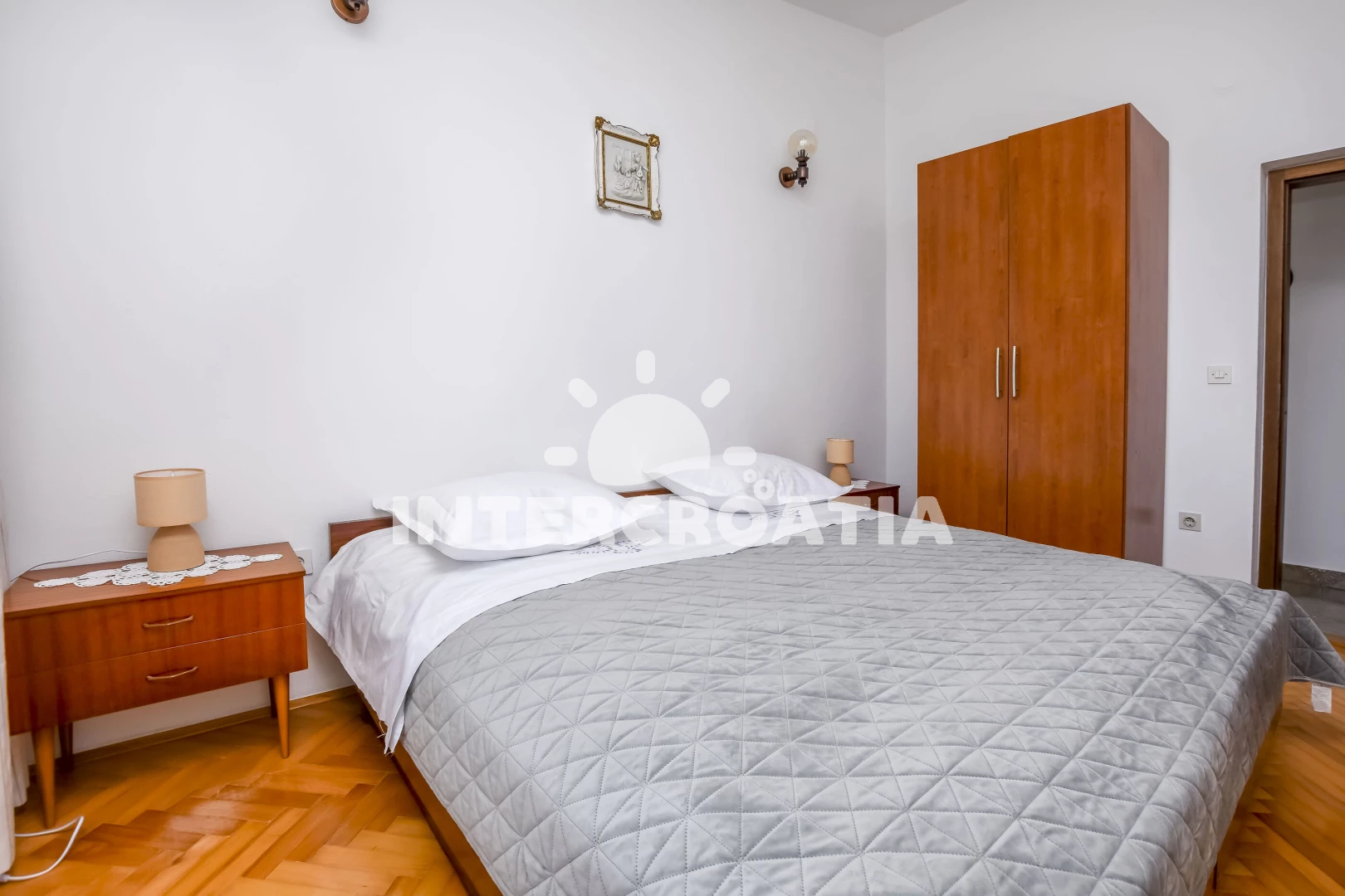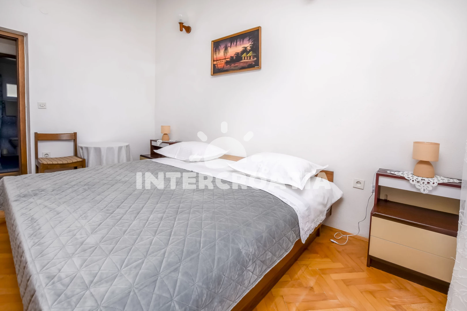 Apartmán (80 m2) s terasou, venkovním posezením a výhledem na moře se nachází v 1. patře domu. Apartmán má 4 ložnice, 4 koupelny a je vhodný pro až 8 osob. Kuchyňská linka je vybavena sporákem s troubou, rychlovarnou konvicí, kávovarem, nádobím a lednicí s mrazákem. Dále jídelní stůl, televize se satelitním programem a klimatizace. Tři ložnice s dvoulůžkem, koupelnou a vstupem na terasu. Čtvrtá ložnice s dvoulůžkem a koupelnou. Koupelny jsou vybaveny sprchovým koutem, umyvadlem a wc. Hostům je k dispozici parkování u objektu zdarma.
