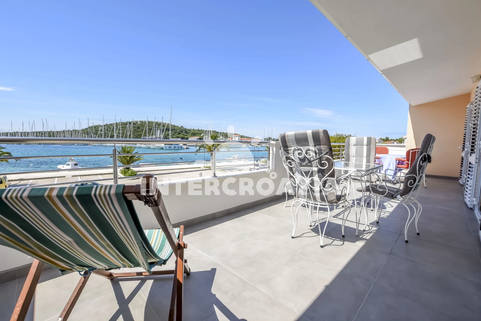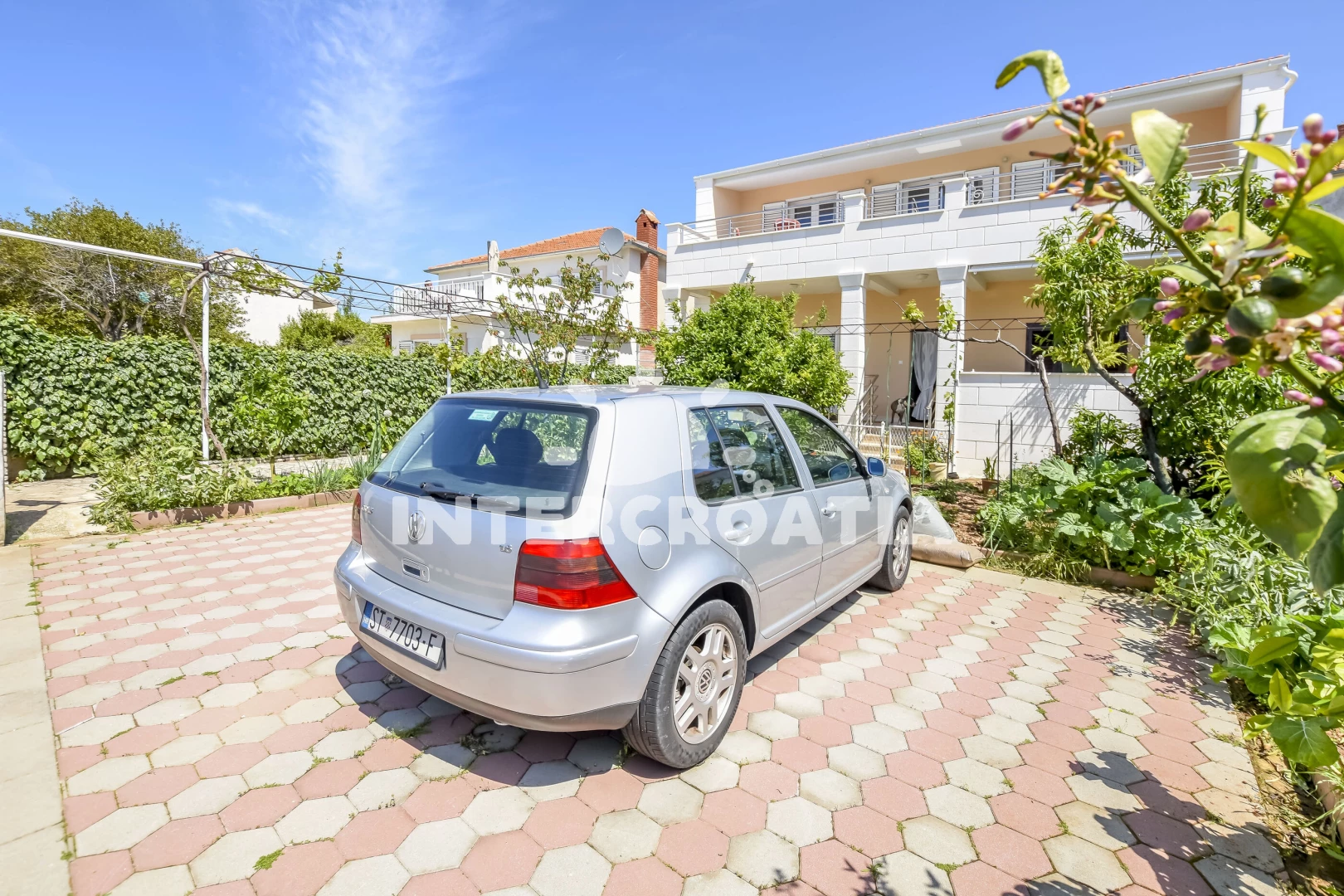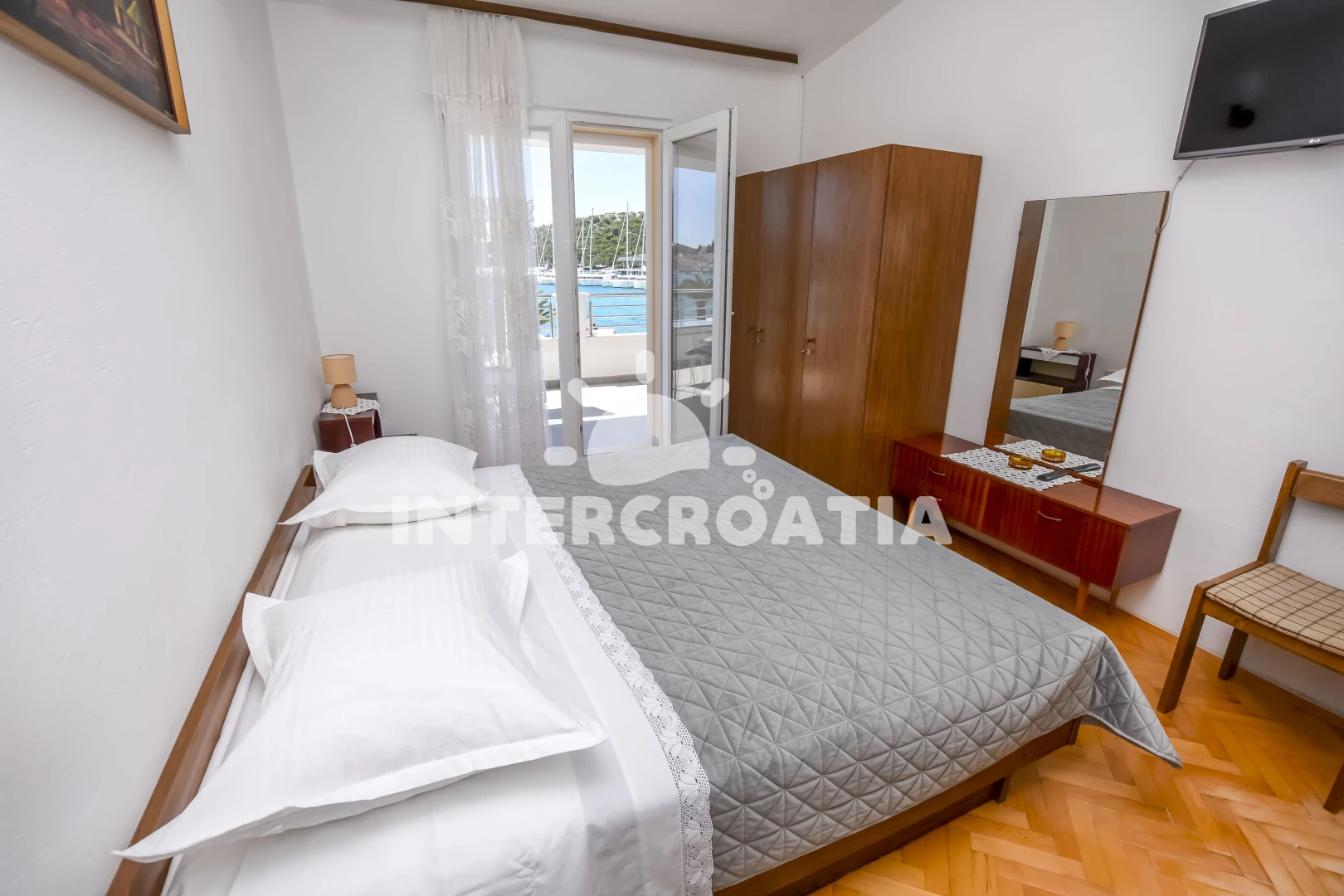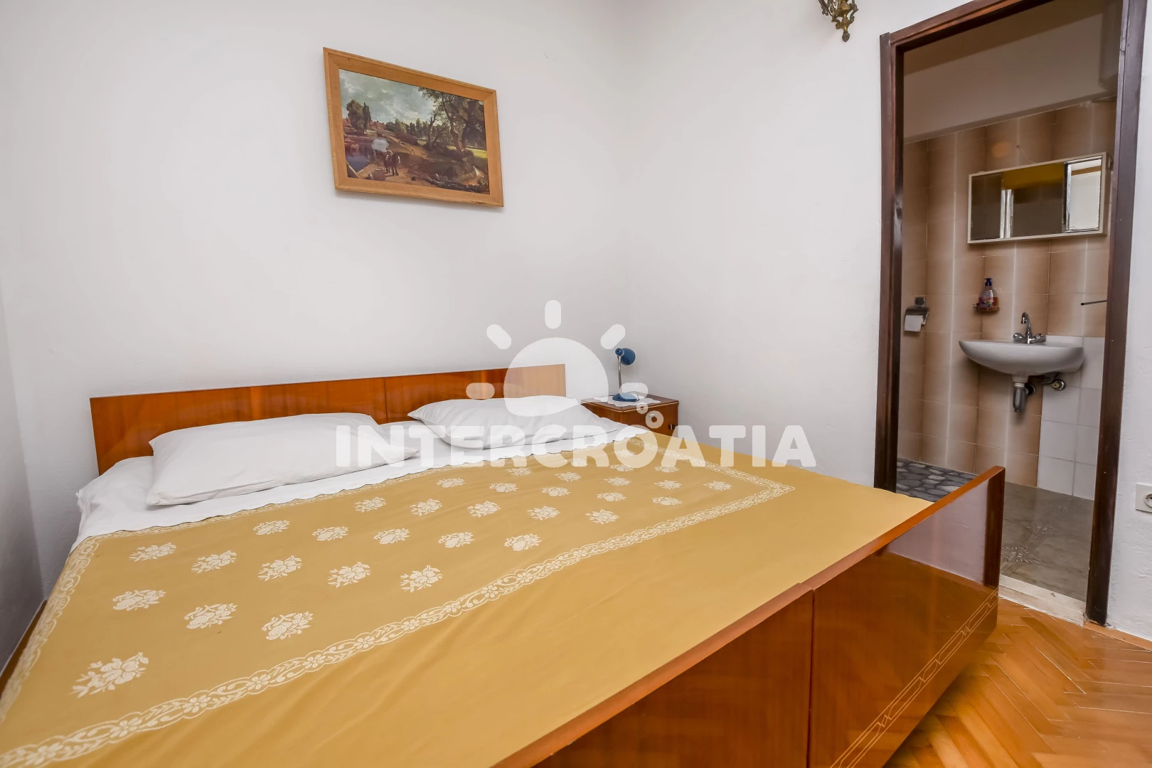 Apartmán (80 m2) s terasou, venkovním posezením a výhledem na moře se nachází v 1. patře domu. Apartmán má 4 ložnice, 4 koupelny a je vhodný pro až 8 osob. Kuchyňská linka je vybavena sporákem s troubou, rychlovarnou konvicí, kávovarem, nádobím a lednicí s mrazákem. Dále jídelní stůl, televize se satelitním programem a klimatizace. Tři ložnice s dvoulůžkem, koupelnou a vstupem na terasu. Čtvrtá ložnice s dvoulůžkem a koupelnou. Koupelny jsou vybaveny sprchovým koutem, umyvadlem a wc. Hostům je k dispozici parkování u objektu zdarma.