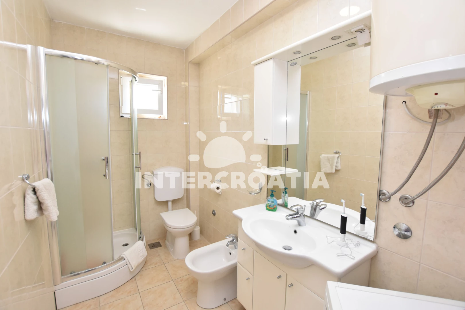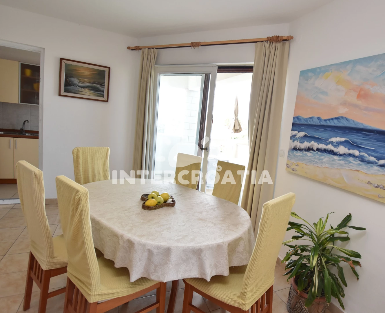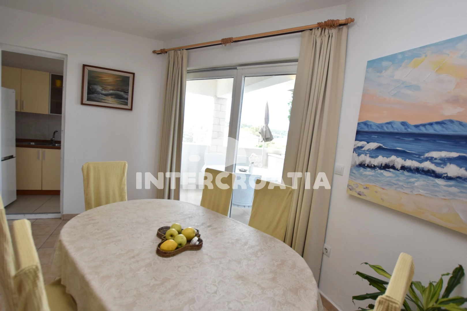 Vzdálenosti: Moře a menší oblázková-betonová pláž 450 m, oblázková pláž u přístavu 500 m, velká oblázková pláž Sepurina 700 m, obchod s potravinami 175 m, restaurace, bar, centrum a půjčovna motorových člunů 300 m, lékárna 400 m, přístav 570 m, veřejná doprava 700 m, čerpací stanice 6,7 km, park Plitvice 30 km, trajekt (Split) 40 km, letiště (Split) 27 km.