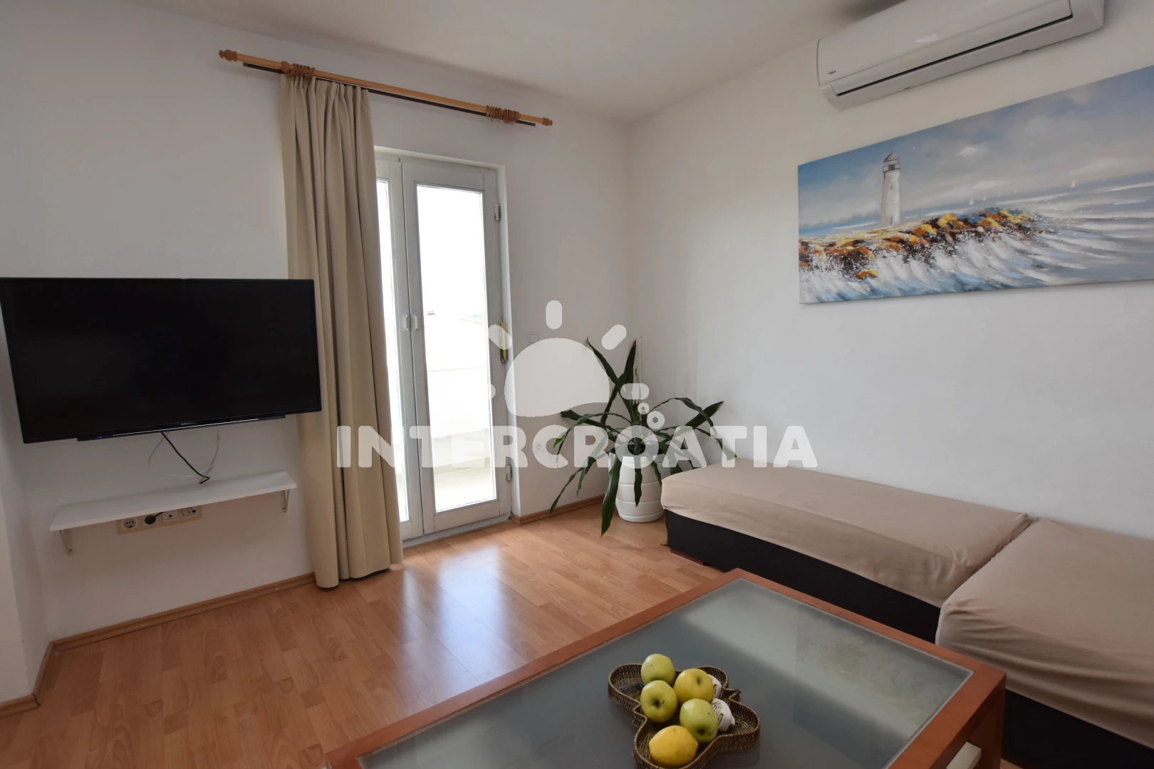 Apartmán (90 m2) s terasou a venkovním posezením. Apartmán má 2 ložnice a je vhodný pro až 6 osob. Obývací pokoj je spojený s kuchyní. Kuchyňská linka je vybavena varnou deskou, digestoří, vestavěnou troubou, rychlovarnou konvicí, kávovarem, nádobím a lednicí s mrazákem. Obývací pokoj s jídelním stolem, pohovkou (rozložitelná na extra lůžko pro 2 osoby), televizí se satelitním programem, klimatizací a vstupem na terasu. První ložnice s jedním dvoulůžkem. Druhá ložnice se dvěma jednolůžky. Koupelna se sprchovým koutem, umyvadlem, pračkou a wc. Hostům je k dispozici parkování u objektu zdarma.
