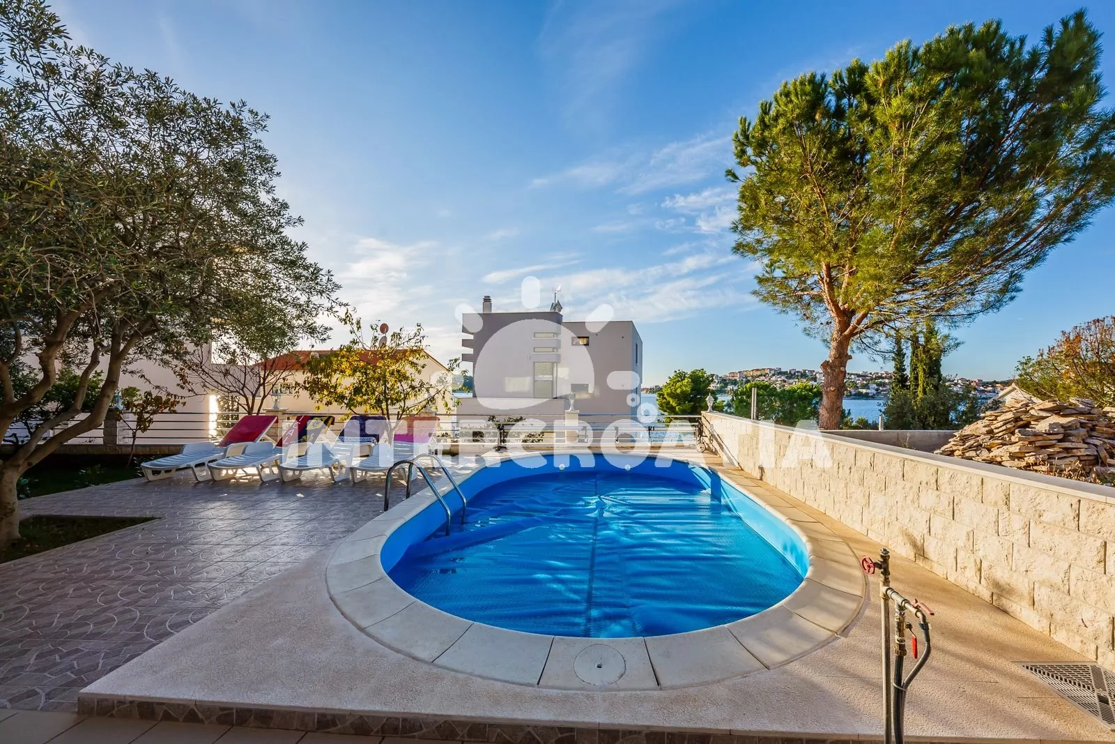 Jedinečná poloha u moře s výhledem na lagunu a historické městečko Rogoznica.
