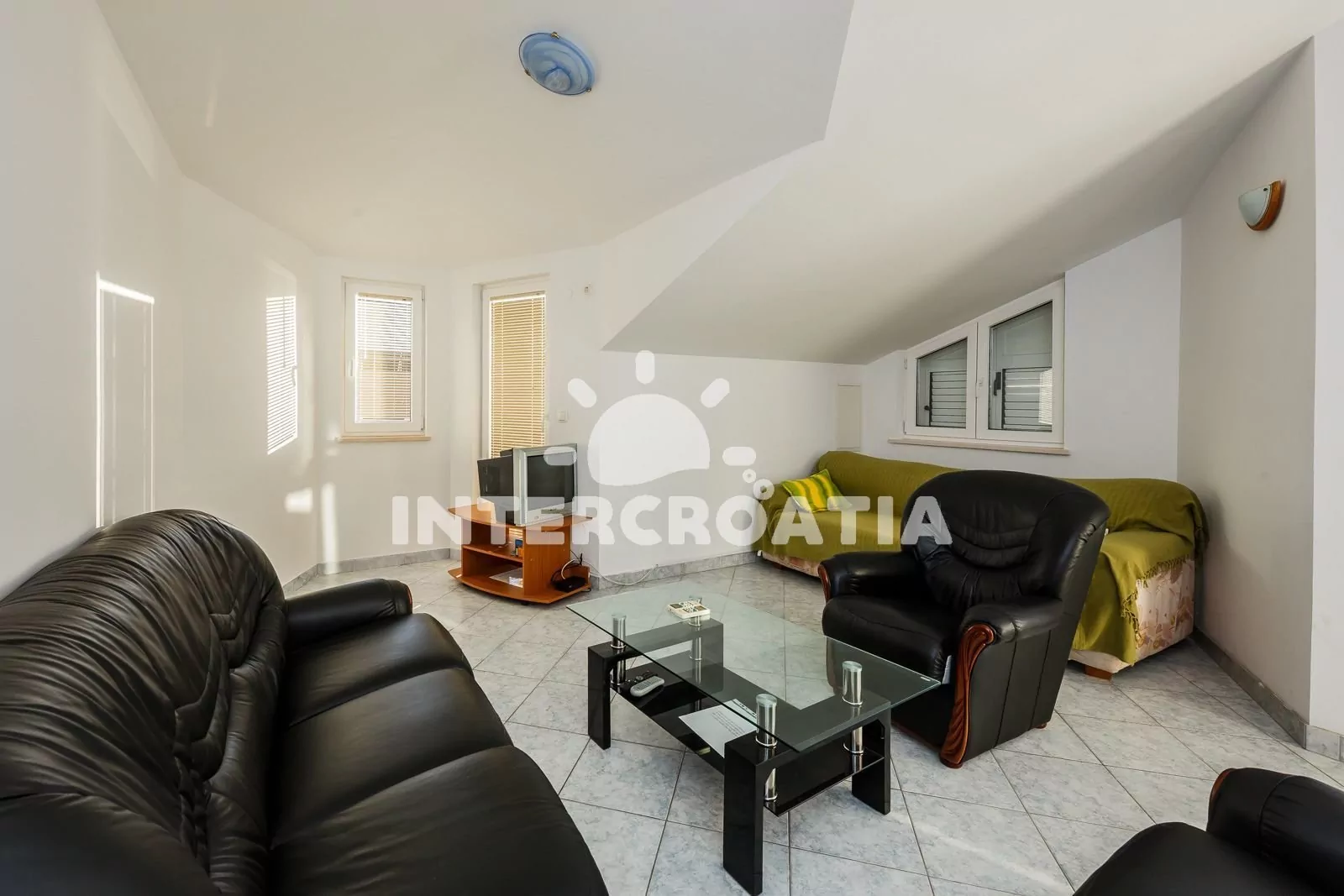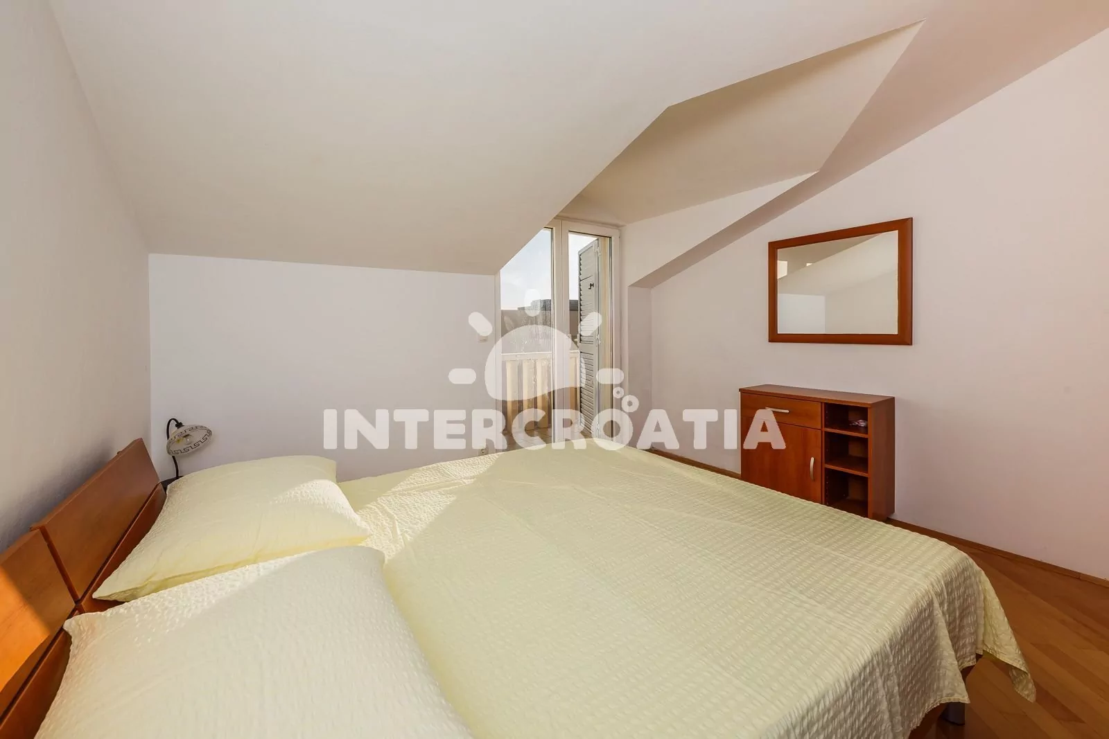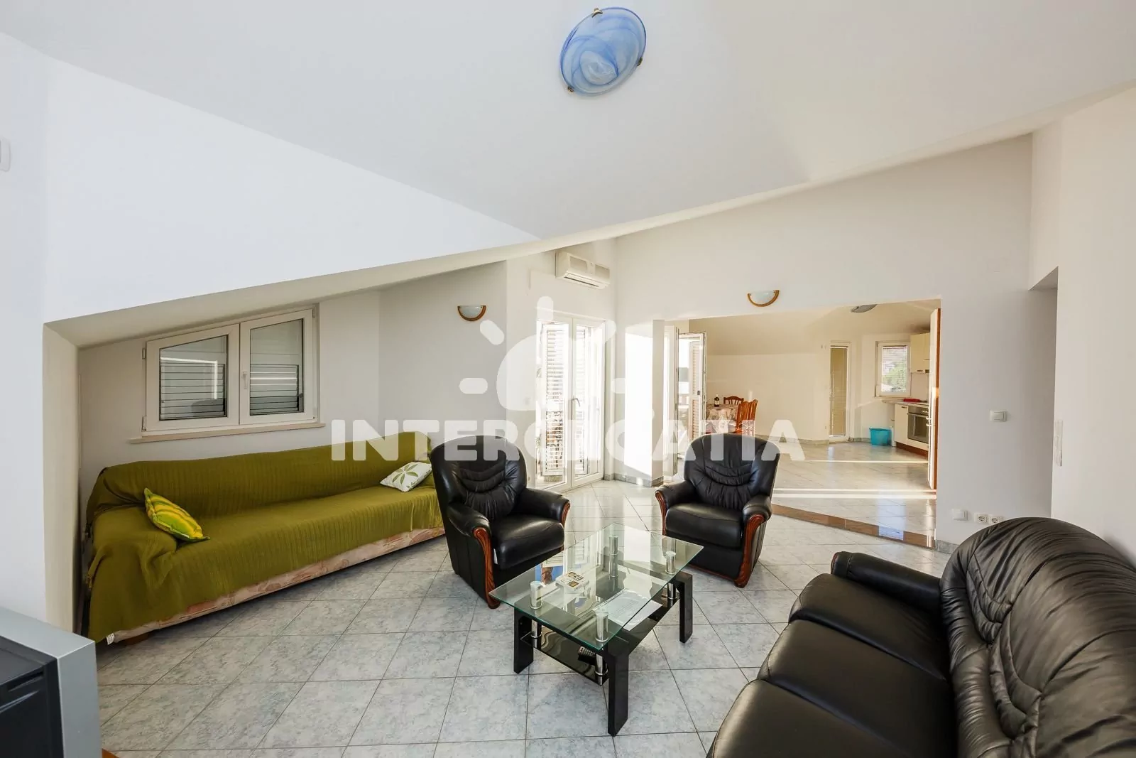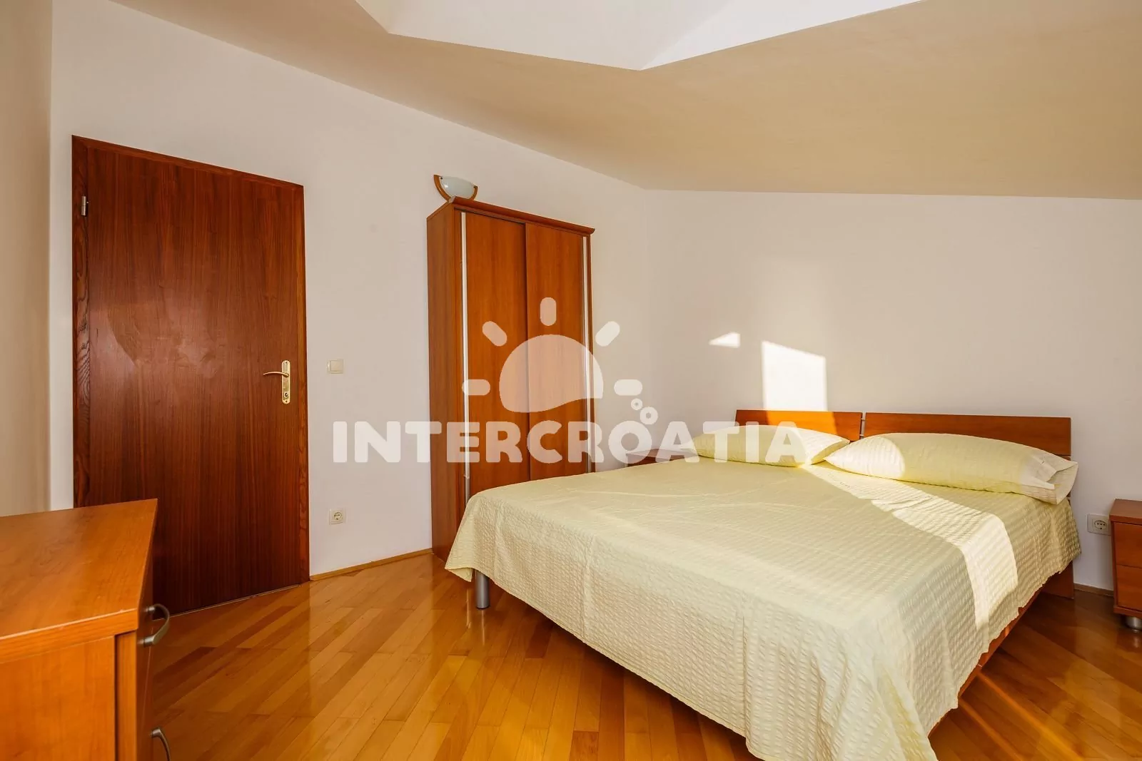 Třípodlažní apartmánová vila s terasou, posezením, zapuštěným bazénem a překrásným výhledem na moře.