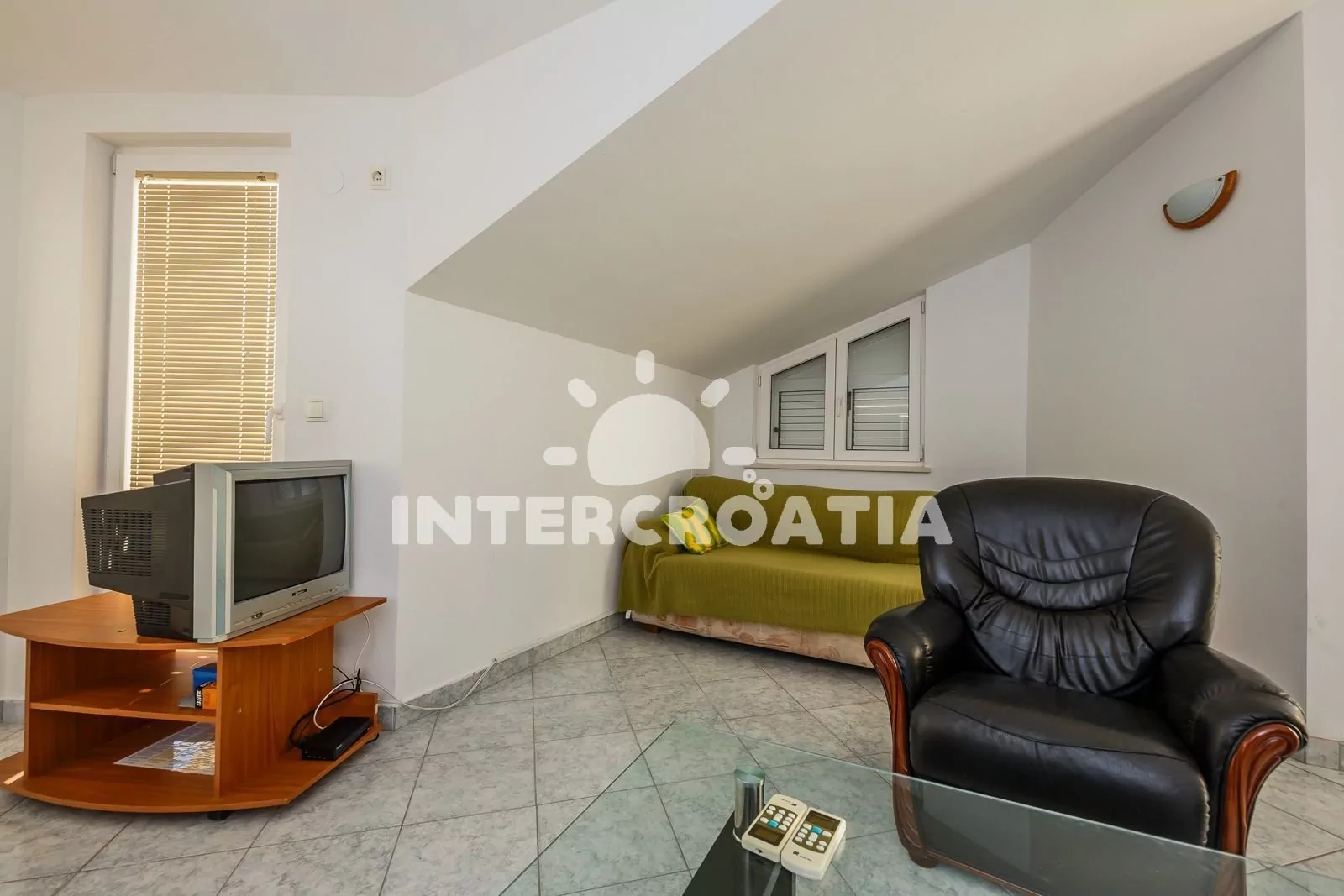 Vzdálenosti: Moře 40 m, pláž (oblázková a betonové desky) 50 m, centrum 3 km, market 1 km, pošta 3 km, lékárna 3 km, nemocnice 3 km, restaurace 3 km, směnárna 3 km, banka 3 km, přístav 3 km, potápěčský klub 3 km, tenisové kurty 3 km, půjčovna kol 3 km, venkovní bazén 10 m, diskotéka 10 km, bar 3 km, čerpací stanice 10 km, veřejná doprava 1 km, trajekt (Split) 50 km, letiště (Split) 25 km.