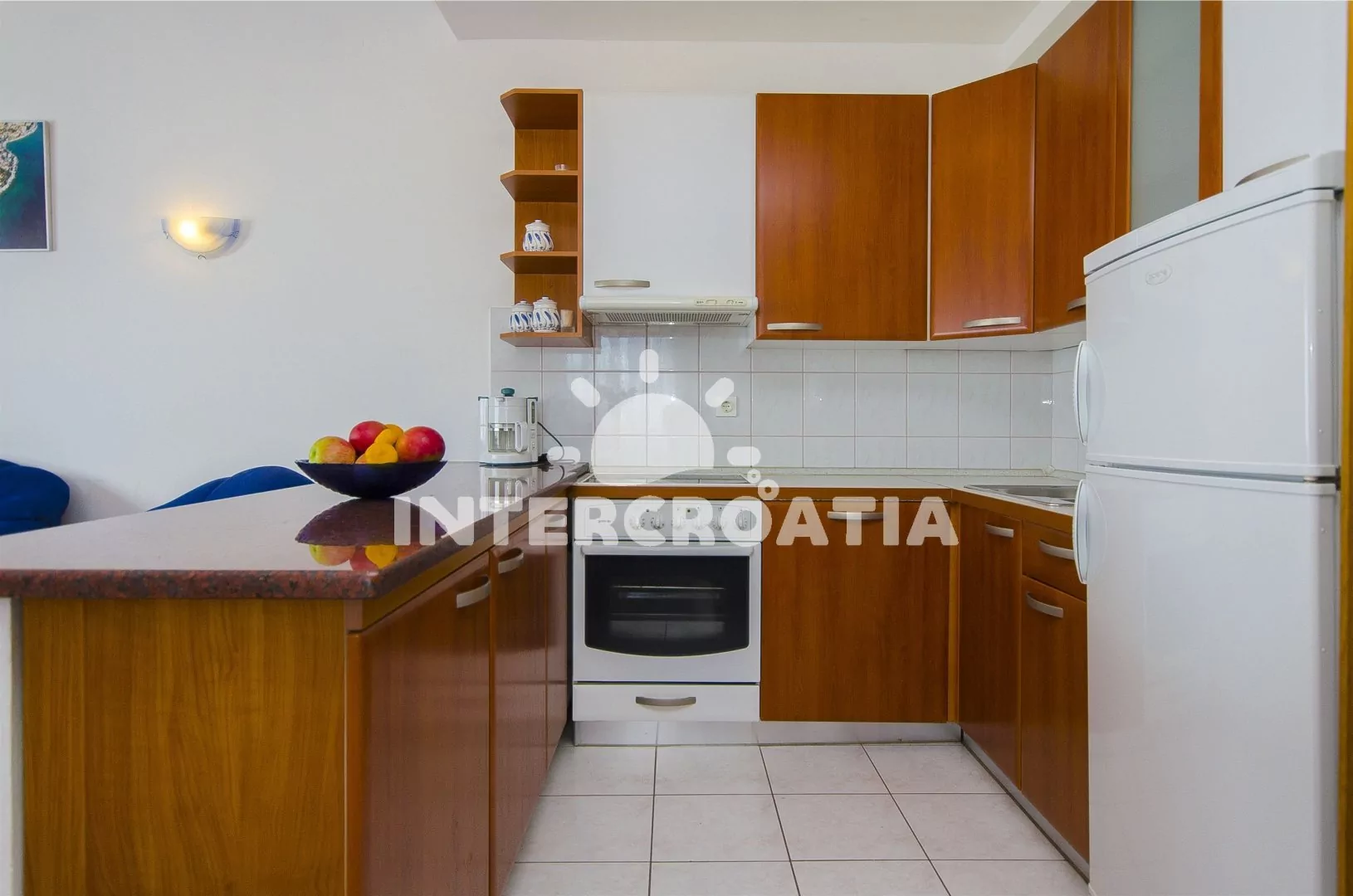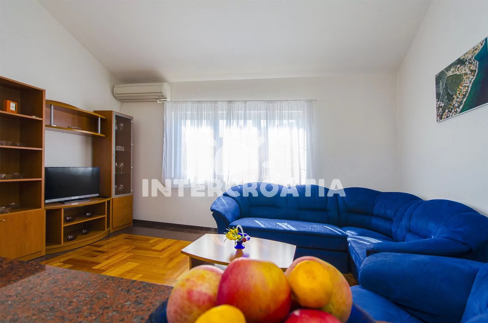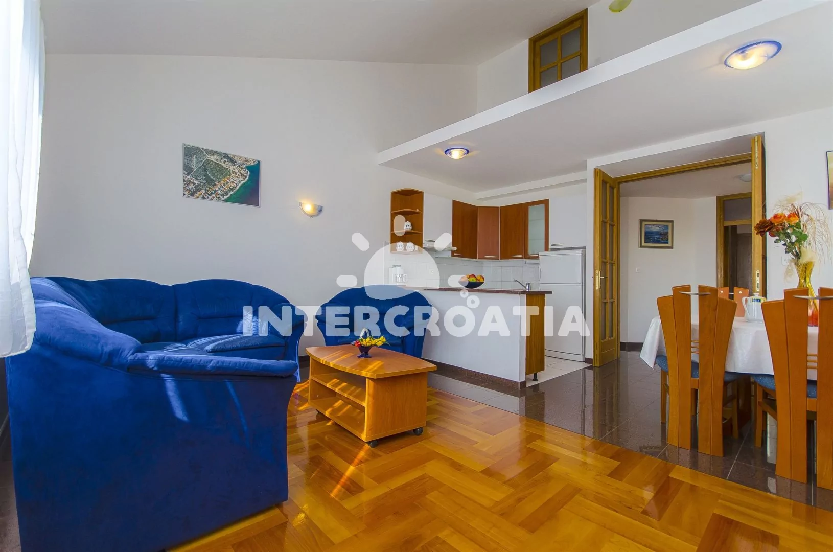 Prostorný a pohodlně zařízený apartmán s dvěma koupelnami (masážní vana) a terasou s výhledem na moře, nacházející se v 2. patře domu. Vstup, obývací místnost spojená s kuchyní. Kuchyňská linka se…
