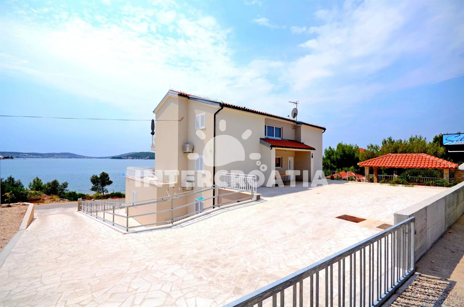 Třípodlažní vila přímo u moře, s nádherným výhledem a možností posezení v kryté pergole s grilem.