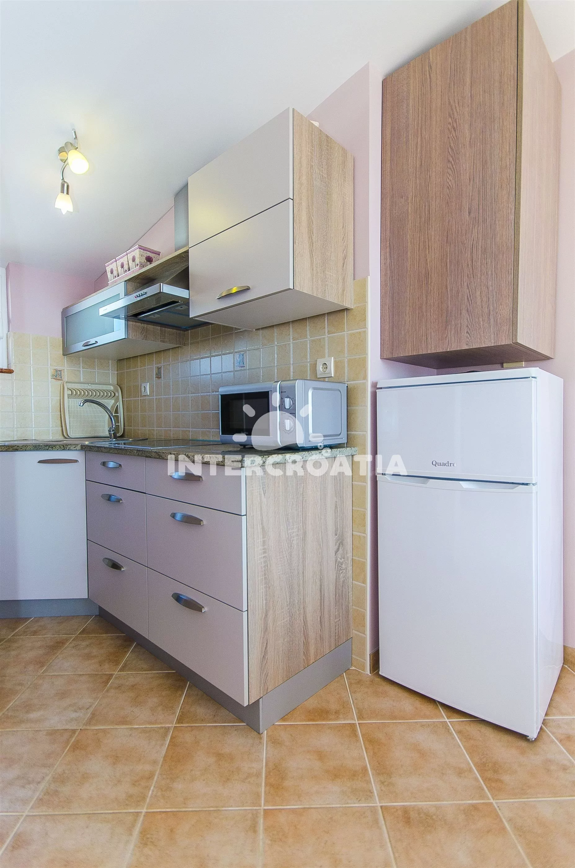 Luxusní třípokojový apartmán s terasou, nacházející se v 2. patře domu. Obývací místnost spojená s kuchyní. Kuchyňská linka se sklokeramickou varnou deskou, mikrovlnnou troubou, lednicí s mrazákem,… Více informací