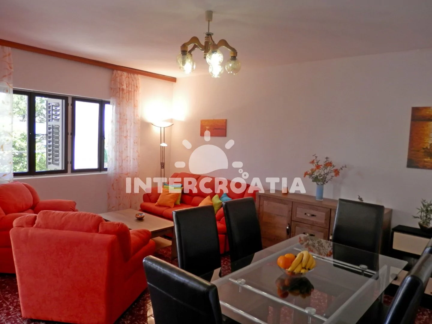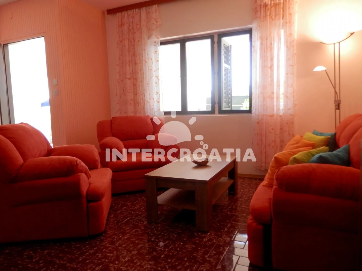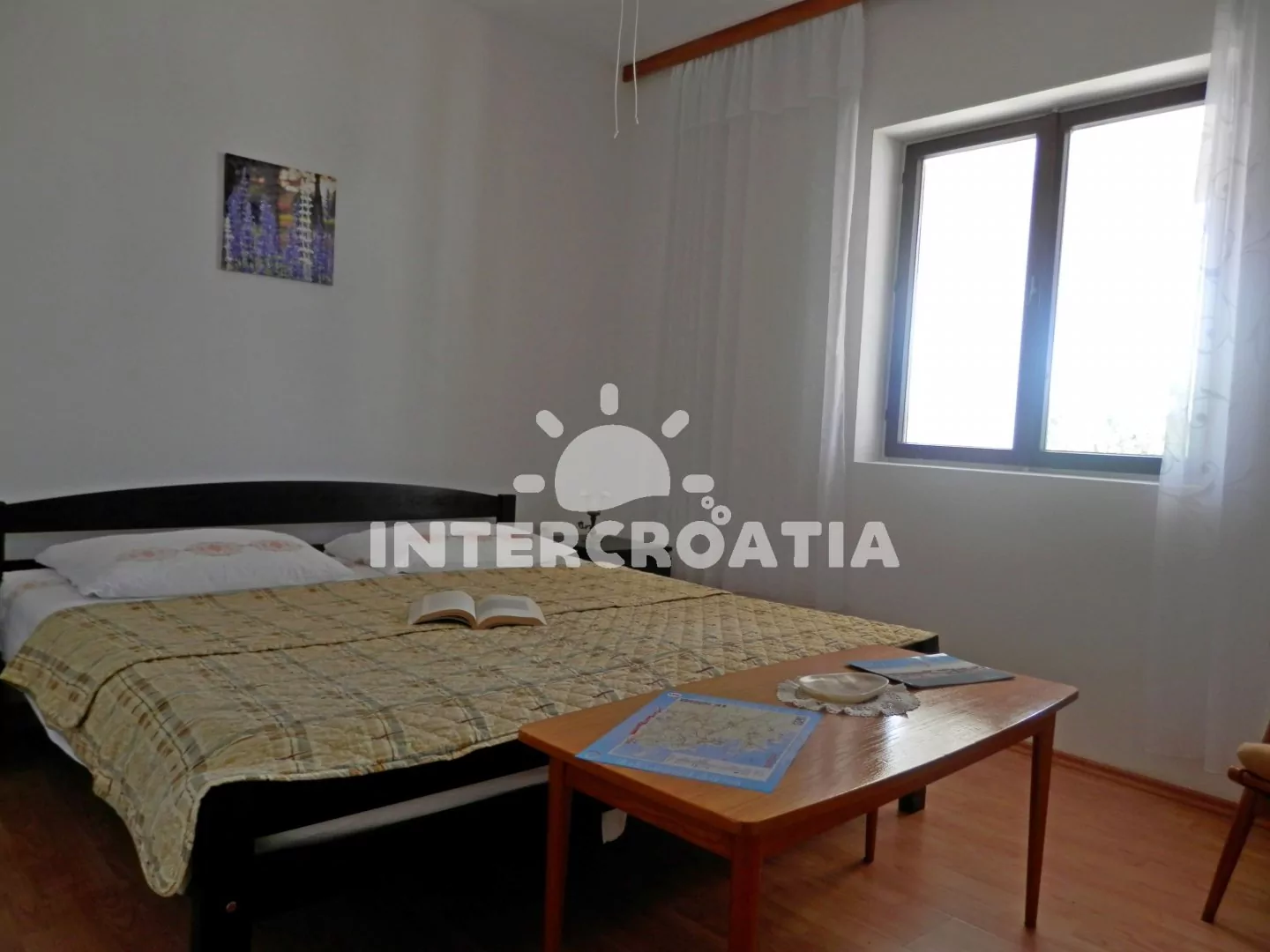 Velký apartmán (100 m2), se nachází v přízemí, disponuje výhledem na moře, krytou terasou a posezením je vhodný pro 6 osob. Obývací pokoj je spojený s kuchyní. Kuchyňská linka je vybavena sporákem, troubou, rychlovarnou konvicí, myčkou na nádobí, kávovarem, nádobím a lednicí s mrazákem. Obývací pokoj s jídelním stolem pro 6 osob, televizí se satelitním programem, sedací soupravou, pohovkou a vstupem na terasu. První i druhá ložnice je vybavena vždy s jedním dvoulůžkem. Třetí ložnice je vybavena s dvěma jednolůžky. Koupelna s vanou, sprchovou zástěnou, umyvadlem, pračkou, fénem a wc. Dále samostatné wc s umyvadlem. Hostům je k dispozici a parkování u objektu zdarma.