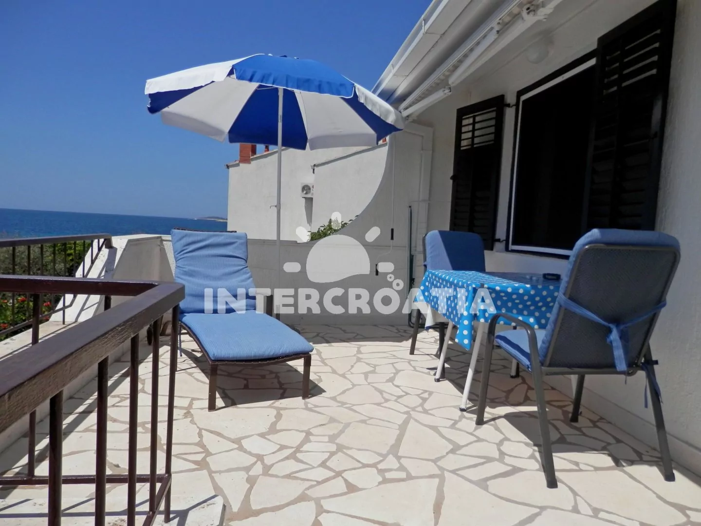 Vzdálenosti: Moře 5 m, pláž (oblázky a betonové desky) 5 m, obchod 1000 m, centrum 1000 m, pošta 1500 m, lékárna 1000 m, zdravotní středisko 1500 m, restaurace 1000 m, směnárna 1000 m, banka 1000 m, bar 300 m, půjčovna kol 1000 m, potápěčský klub 1000 m, tenisové kurty 1000 m, diskotéka 7 km, muzeum 25 km, čerpací stanice 7 km, veřejná doprava 2000 m, přístav 1000 m, trajekt 35 km (Šibenik), letiště 30 km (Split).