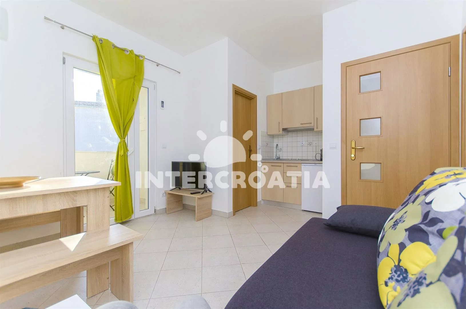 Vzdálenosti: Moře 80 m, pláž (oblázky a betonové desky) 80 m, obchod 700 m, centrum 700 m, pošta 900 m, lékárna 900 m, zdravotní středisko 1500 m, restaurace 900 m, směnárna 700 m, banka 700 m, muzeum 22 km, bar 700 m, půjčovna kol 700 m, diskotéka 1500 m, čerpací stanice 8000 m, veřejná doprava 2000 m, přístav 1500 m, trajekt 32 km (Šibenik), letiště 25 km (Split).