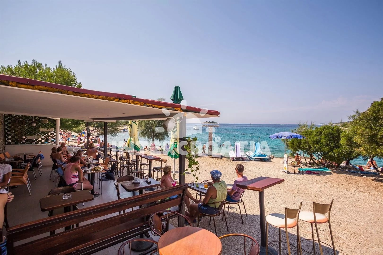 Vzdálenosti: Moře a pláž 30 m, centrum, supermarket, ambulance, lékárna, směnárna, banka, pošta, bar, restaurace, diskotéka, půjčovna kol, tenis, přístav 500 m, veřejná doprava 1 km, čerpací stanice 7 km, letiště 30 km, trajekt 32 km.