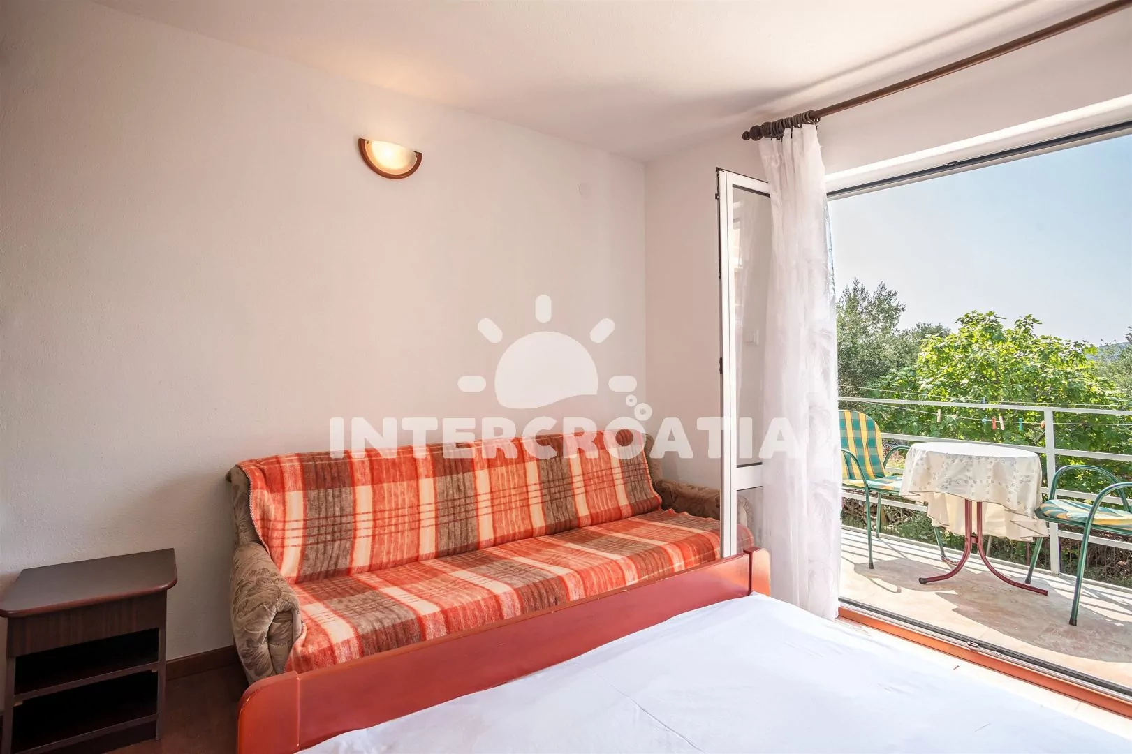 Apartmán typu studio je vhodný pro 2 osoby, nachází se v prvním patře domu. Kuchyňský kout je vybavený jídelním stolem pro 3 osoby, televizí se satelitním programem, klimatizací, kuchyňskou linkou se sporákem, troubou, mikrovlnnou troubou, rychlovarnou konvicí, nádobím a lednicí s mrazákem. Obývací část je vybavena jedním dvoulůžkem, pohovkou a vstupem na terasu. Koupelna se sprchovým koutem, umyvadlem a wc. Hostům je k dispozici parkování u objektu zdarma.