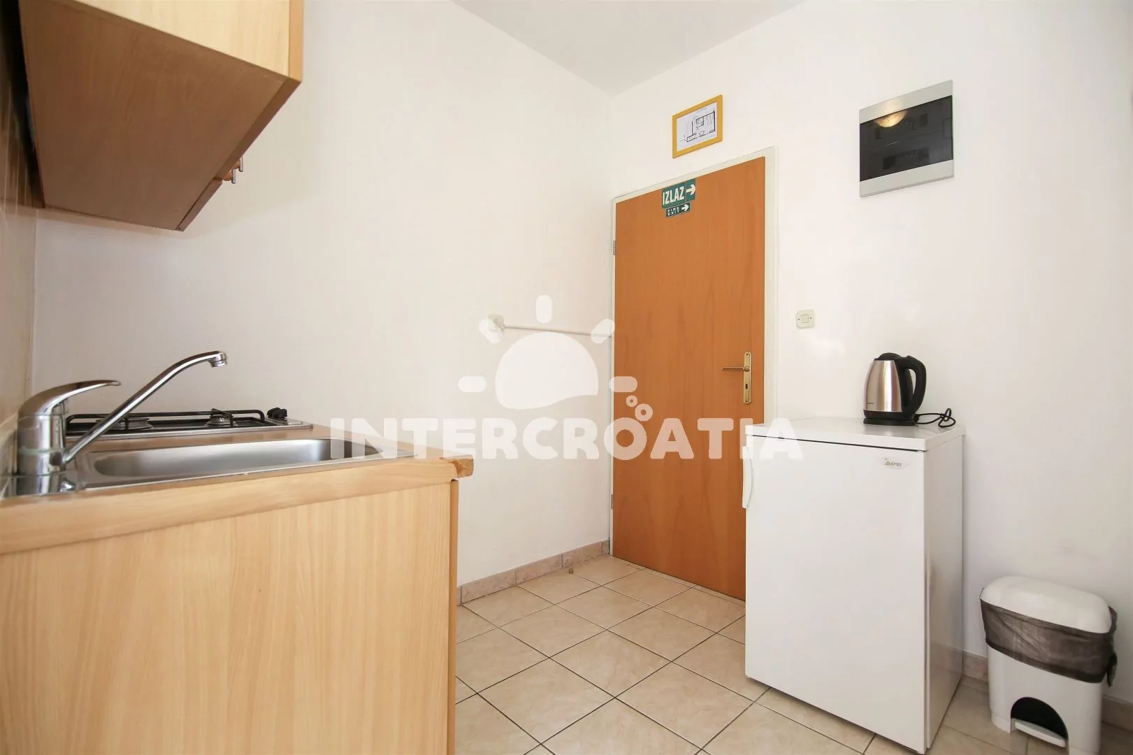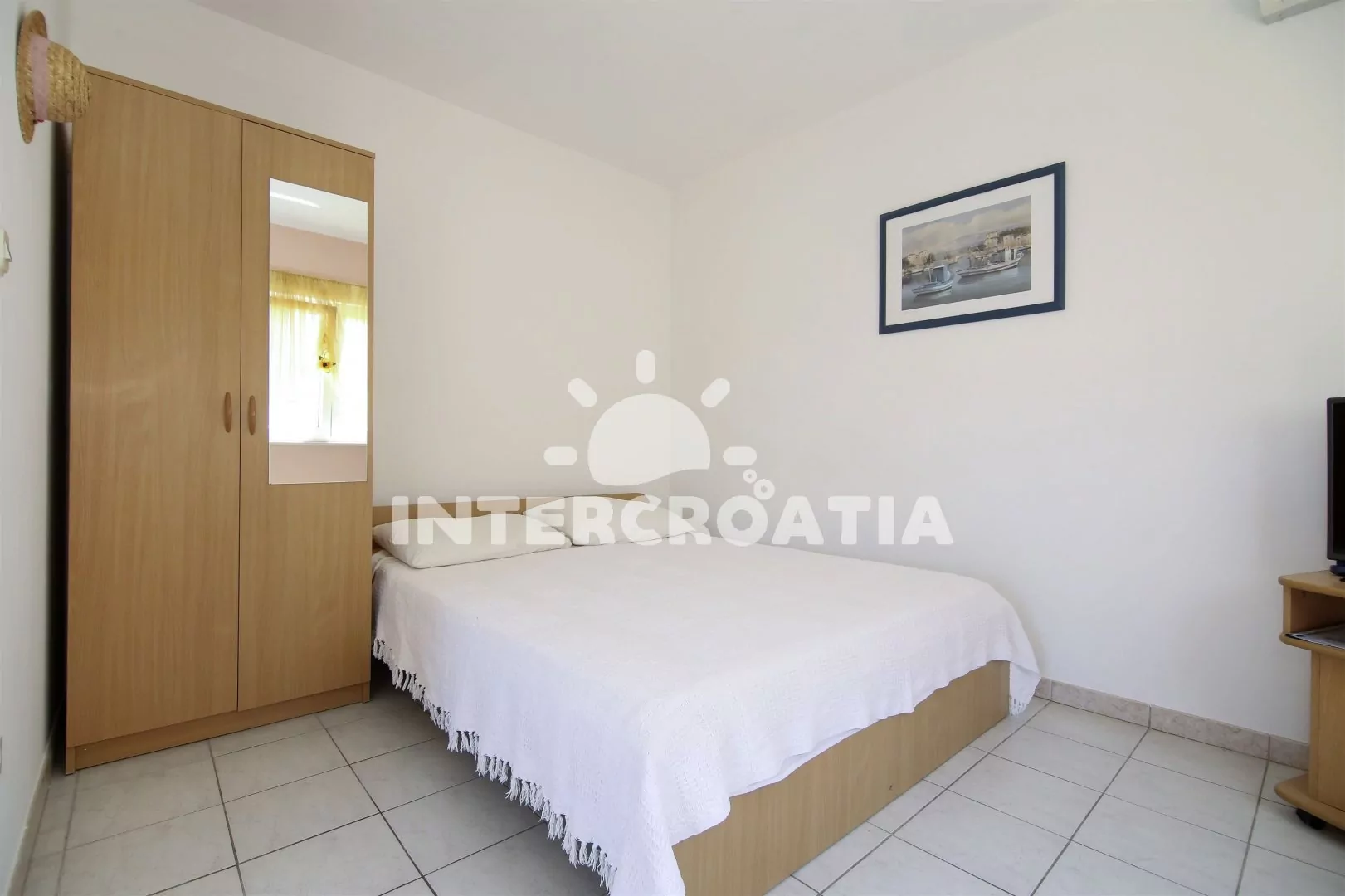 Vzdálenosti: Moře a pláž 150 m, centrum, restaurace, půjčovna kol 500 m, potápění 1,5 km, lékárna, přístav, veřejná doprava, supermarket, tenis, venkovní bazén 800 m, banka, směnárna 1 km, ambulance, pošta 1,2 km, bar 100 m, čerpací stanice, diskotéka 7 km, muzeum 21 km, letiště 25 km, trajekt 50 km.