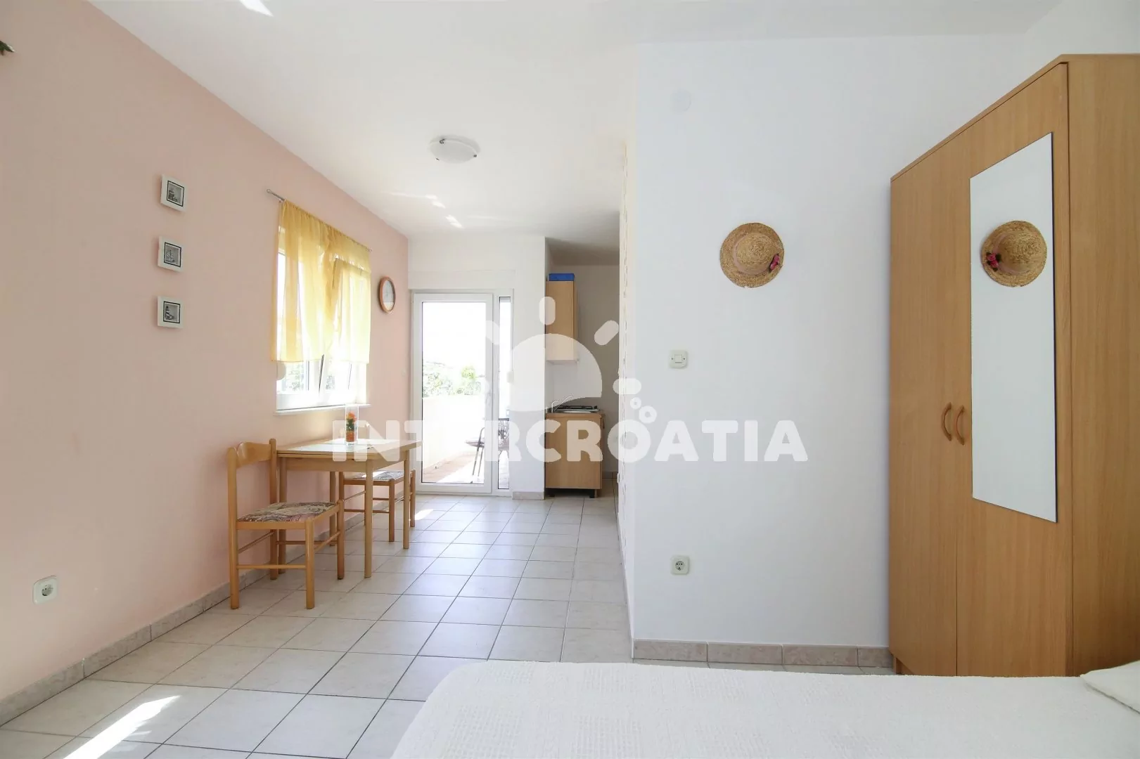 Apartmán typu studio (35 m2) v prvním patře vilky, s vlastním balkonem a venkovním posezením je vhodný pro 2 osoby. Obývací pokoj je spojený s kuchyní. Kuchyňská linka s dvouplotýnkovým sporákem,…