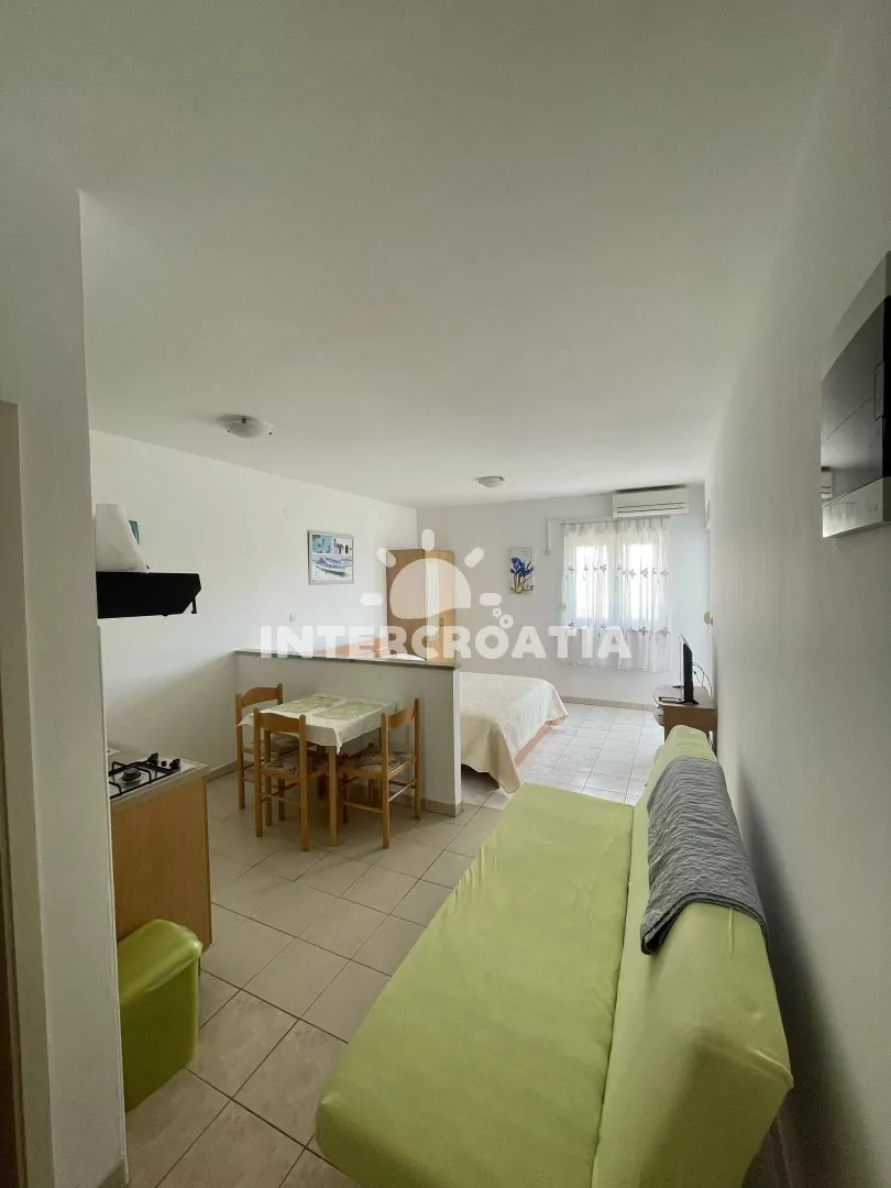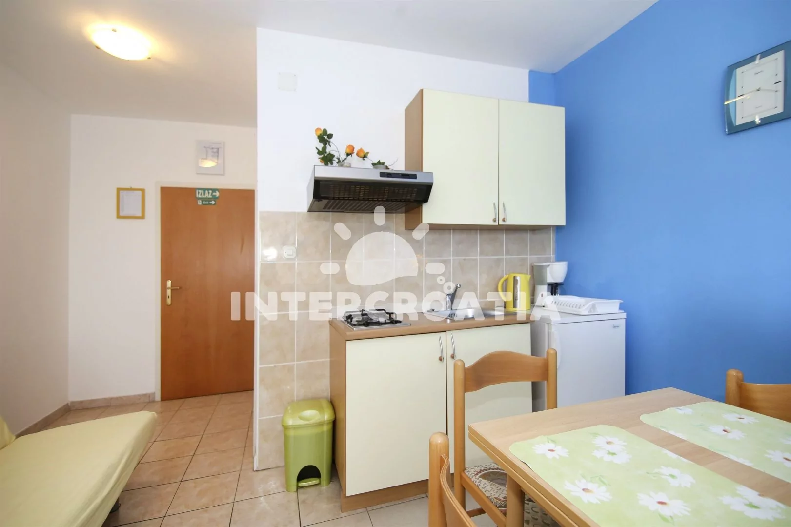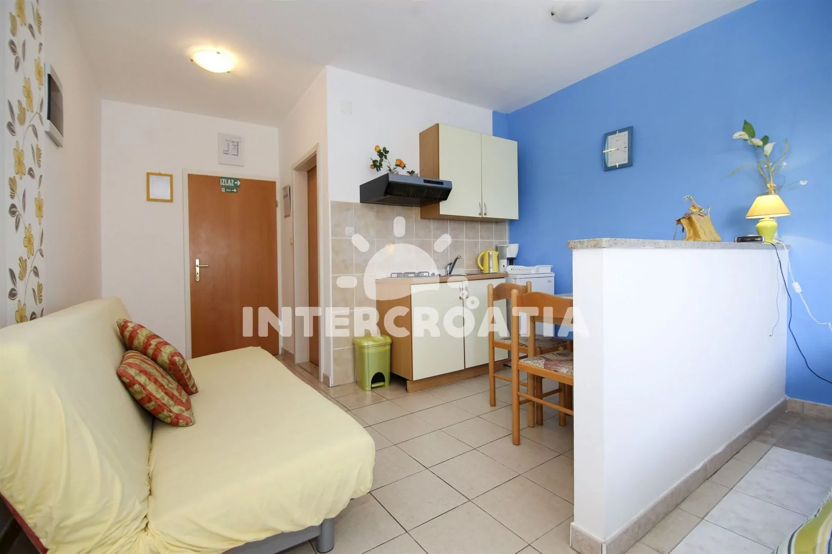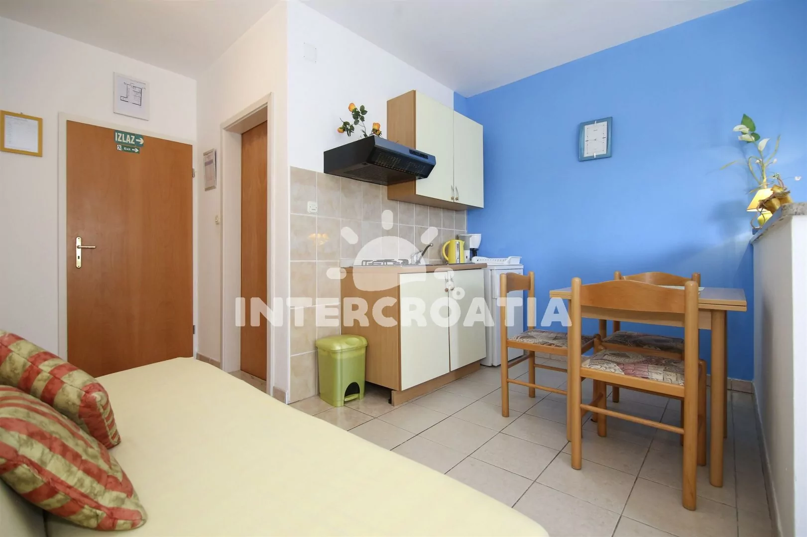 Hezky zařízený apartmán typu studio (38 m2) v prvním patře vilky, s vlastním balkonem a venkovním posezením je vhodný pro 2 osoby. Obývací pokoj je spojený s kuchyní. Kuchyňská linka s dvouplotýnkovým sporákem, digestoří, kávovarem, rychlovarnou konvicí, nádobím a lednicí s mrazákem. Obývací pokoj s jídelním stolem pro 3 osoby, pohovkou, televizí se satelitním programem, radiem, klimatizací, jedním dvoulůžkem a vstupem na balkon. Koupelna se sprchovým koutem, umyvadlem a wc. Hostům je k dispozici parkování u objektu zdarma.