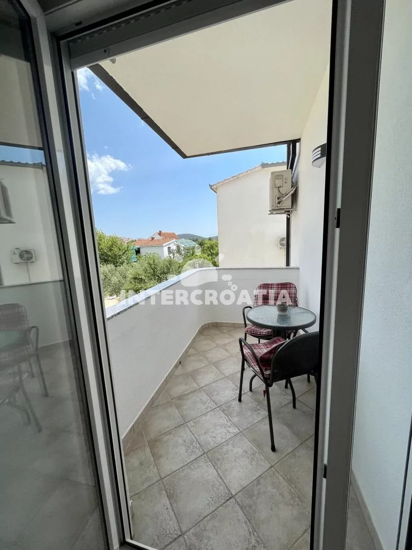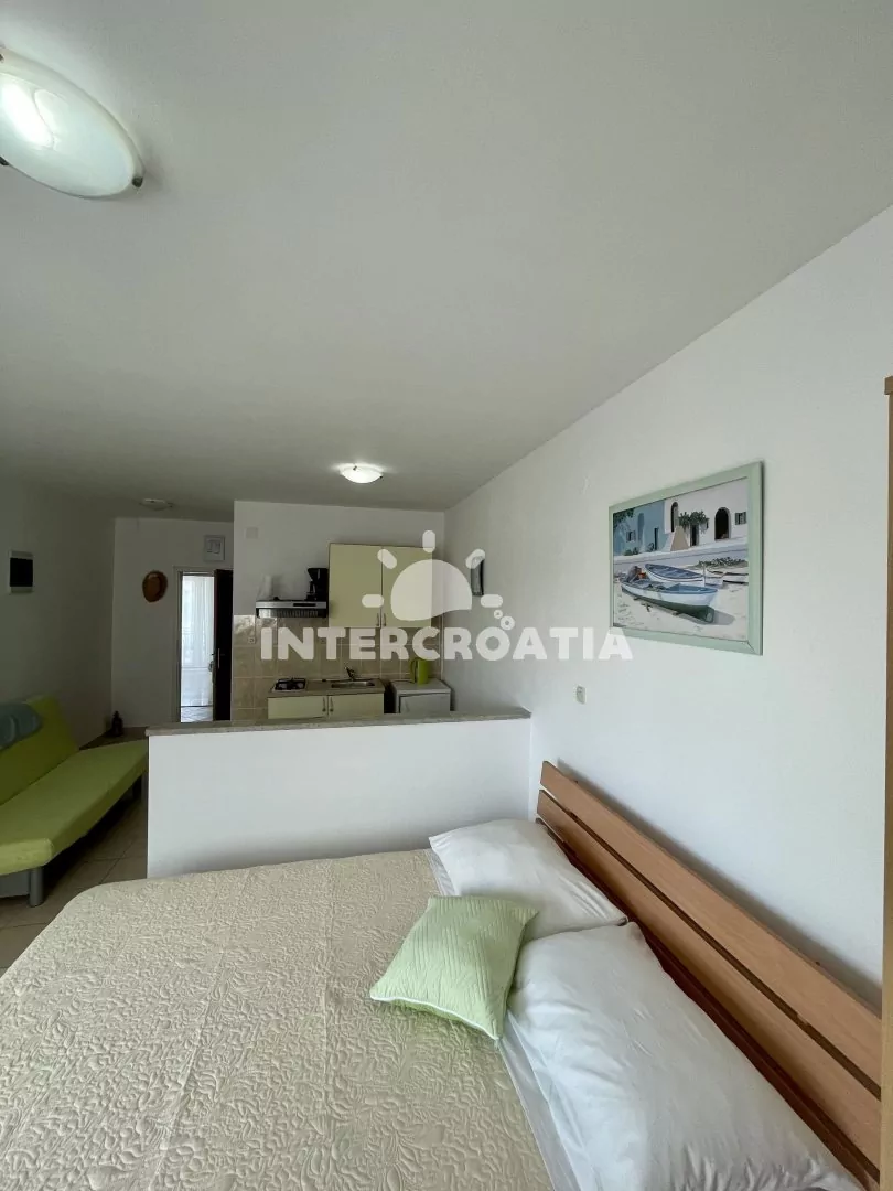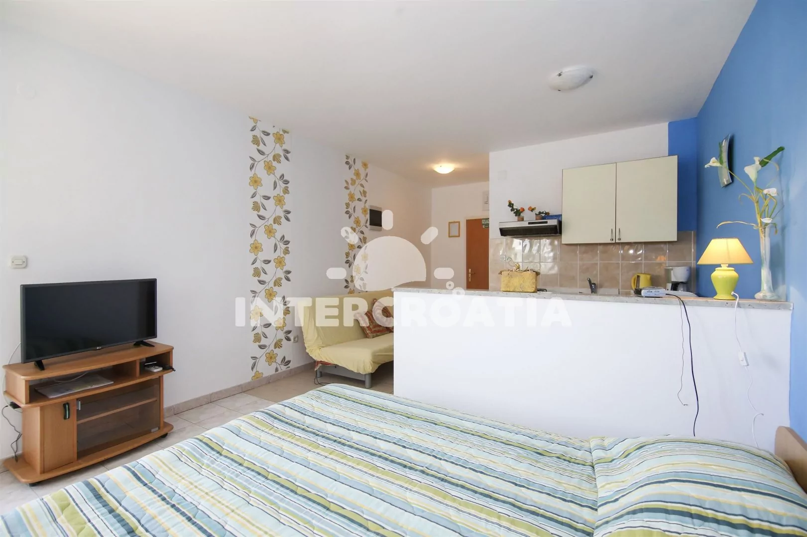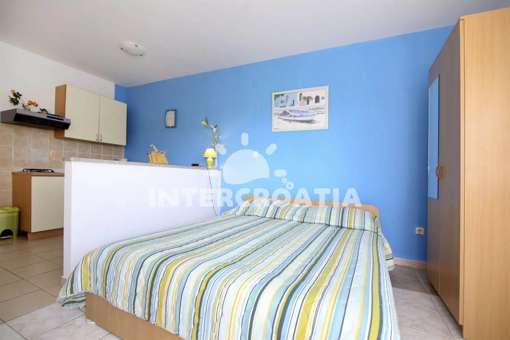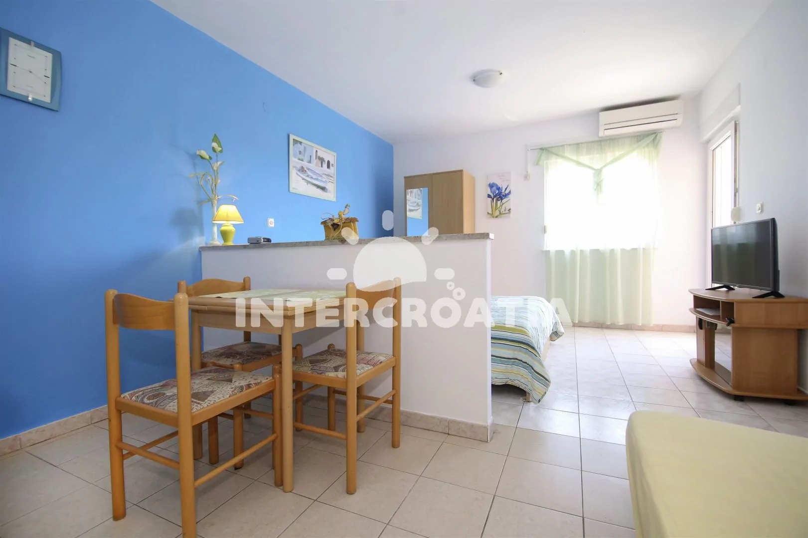 Hezky zařízený apartmán typu studio (38 m2) v prvním patře vilky, s vlastním balkonem a venkovním posezením je vhodný pro 2 osoby. Obývací pokoj je spojený s kuchyní. Kuchyňská linka s dvouplotýnkovým sporákem, digestoří, kávovarem, rychlovarnou konvicí, nádobím a lednicí s mrazákem. Obývací pokoj s jídelním stolem pro 3 osoby, pohovkou, televizí se satelitním programem, radiem, klimatizací, jedním dvoulůžkem a vstupem na balkon. Koupelna se sprchovým koutem, umyvadlem a wc. Hostům je k dispozici parkování u objektu zdarma.