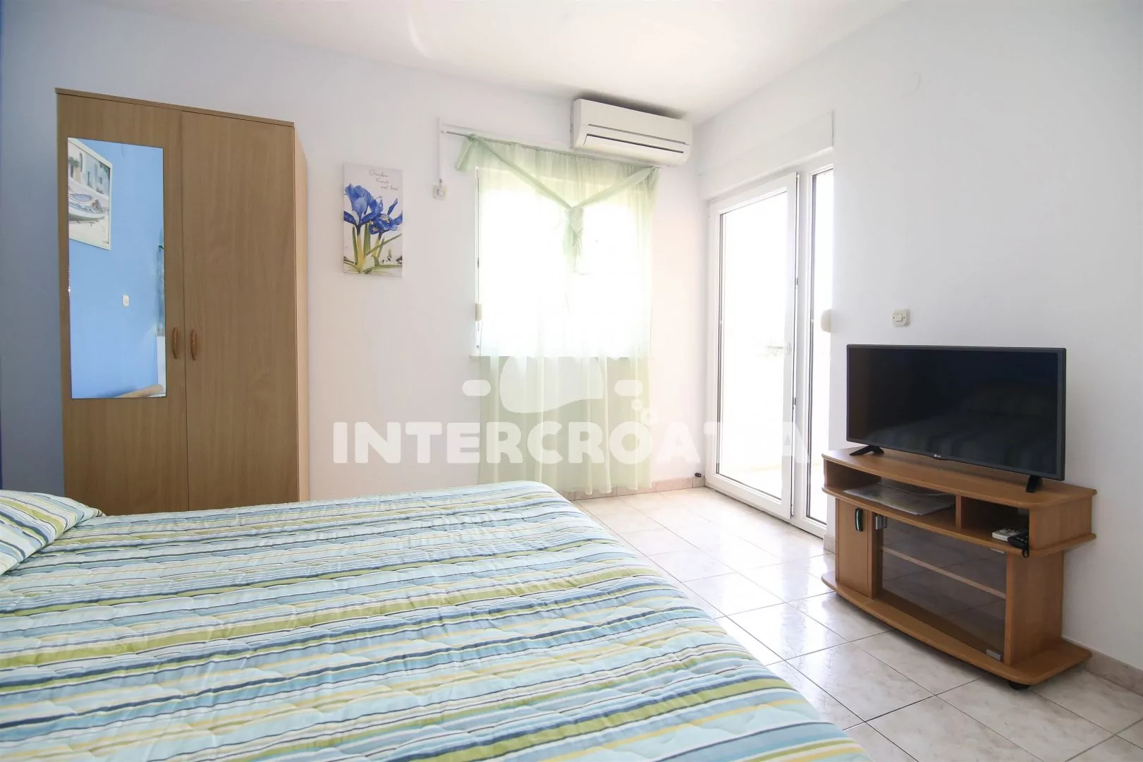 Patrová apartmánová vilka s balkony, lodžiemi a venkovním posezením se nachází v dobré dostupnosti oblázkových pláží. K dispozici gril a parkování u objektu.