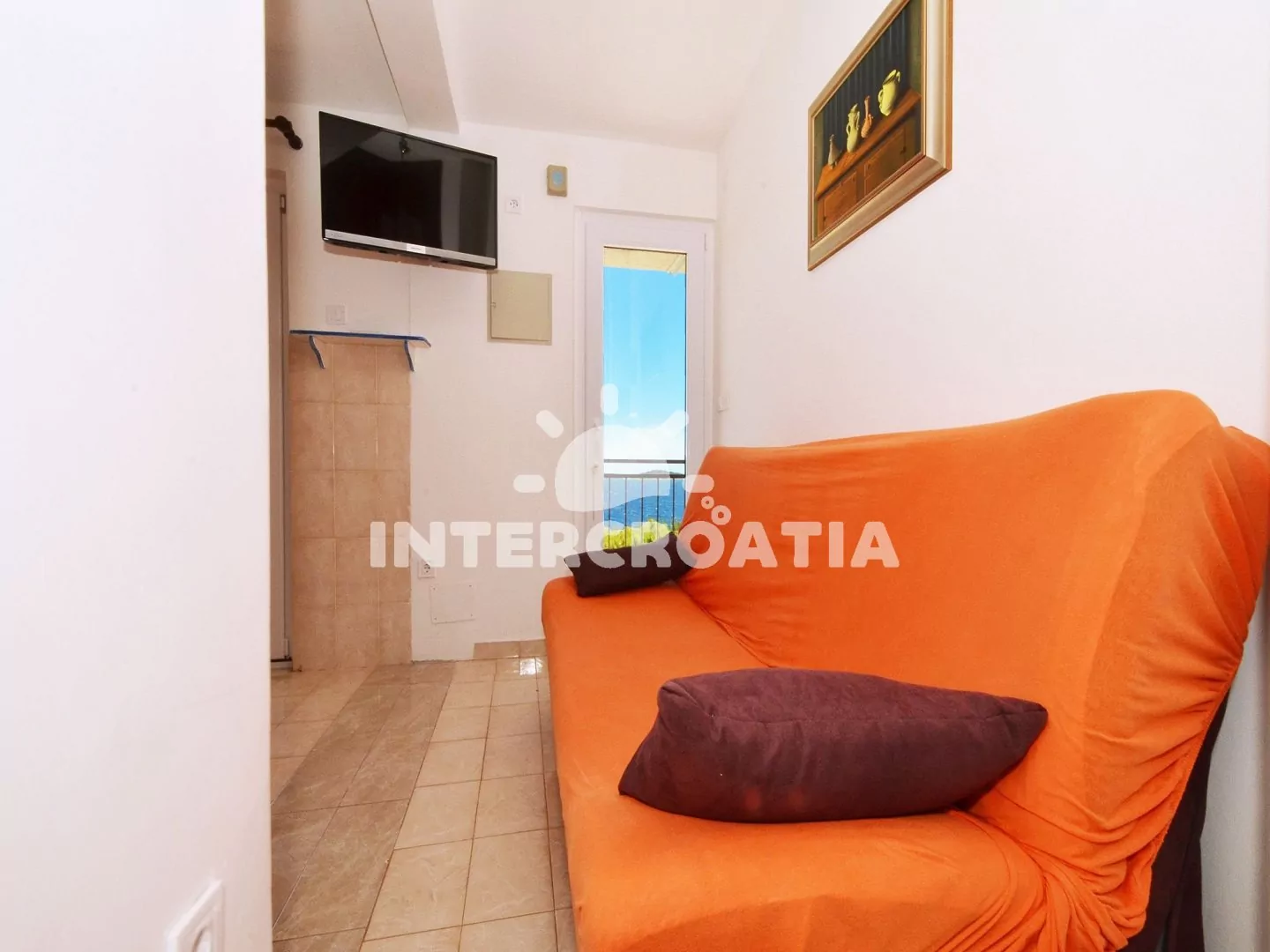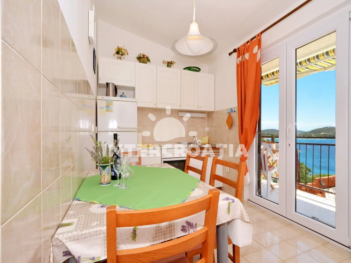 Vzdálenosti: Moře a pláž 30 m, centrum, veřejná doprava, směnárna, banka, diskotéka, bar 2 km, restaurace 1 km, lékárna 1,7 km, supermarket 300 m, přístav, tenis, venkovní bazén 1,9 km, pošta, ambulance, potápění 2,5 km, půjčovna kol 10 m, čerpací stanice 7 km, letiště 25 km, trajekt 50 km.