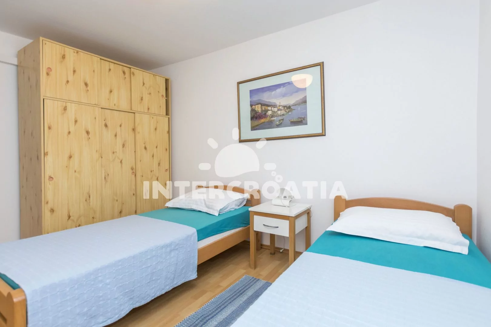 Vilový dům s třemi apartmány v hezkém prostředí, oploceným pozemkem, grilem a parkovacími místy, nachází se v ideální vzdálenosti od moře a pouze 85 m od betonové pláže, 145 m od menší oblázkové pláže a 330 m od velké oblázkové pláže. Dům je umístěný na konci klidné slepé ulice, žádný provoz.
