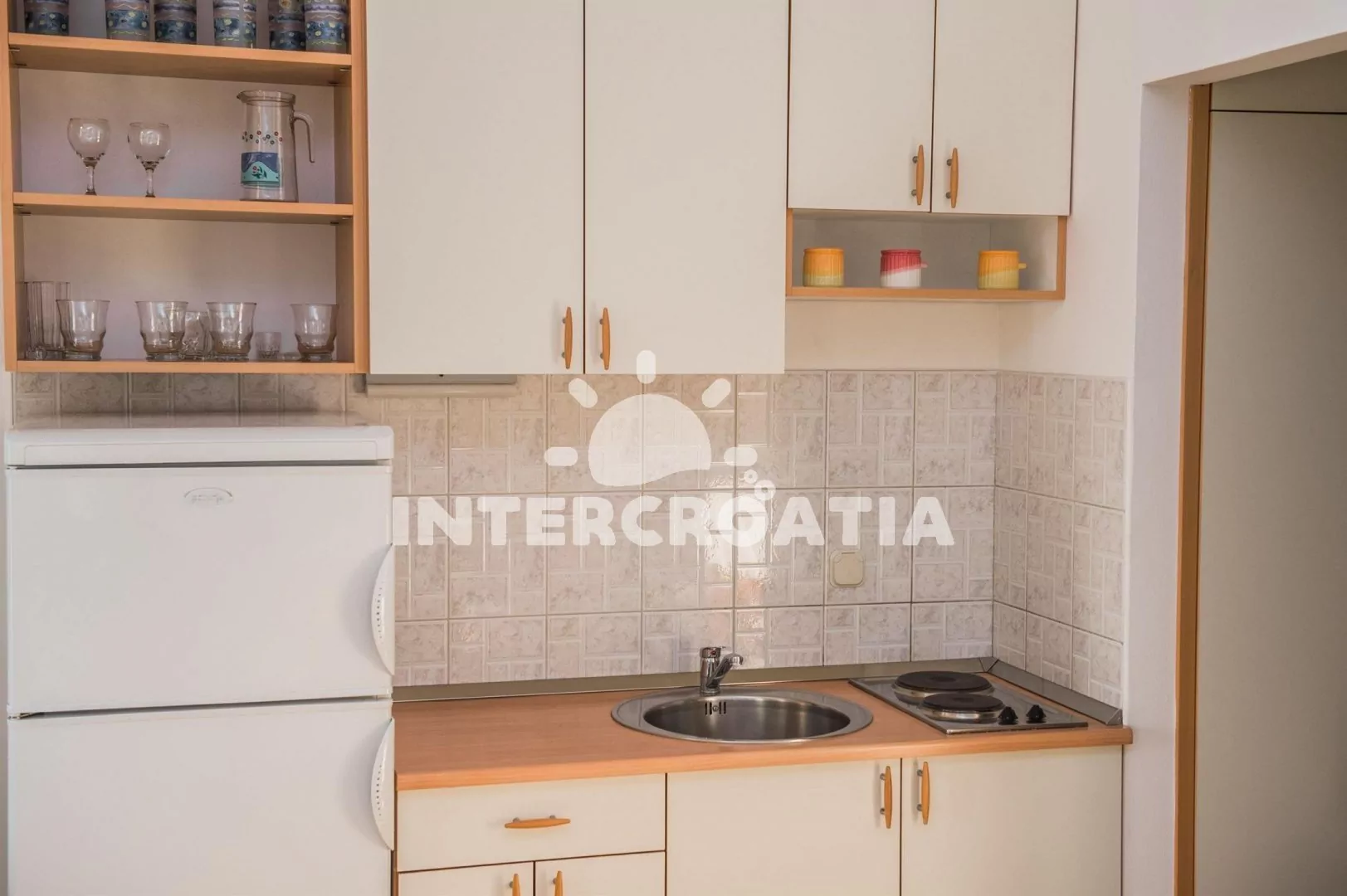Apartmán v druhém patře vily s výhledem na moře a vlastní terasou je vhodný pro 2 až 4 osoby. Obývací pokoj je spojený s kuchyní. Kuchyňská linka je vybavena dvouplotýnkovým sporákem, kávovarem,…