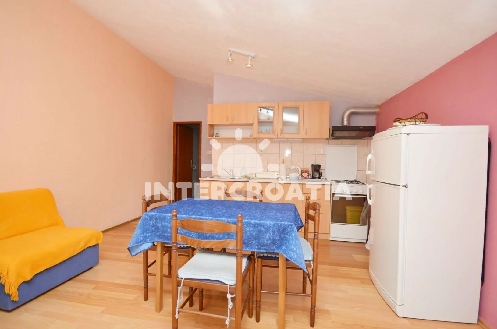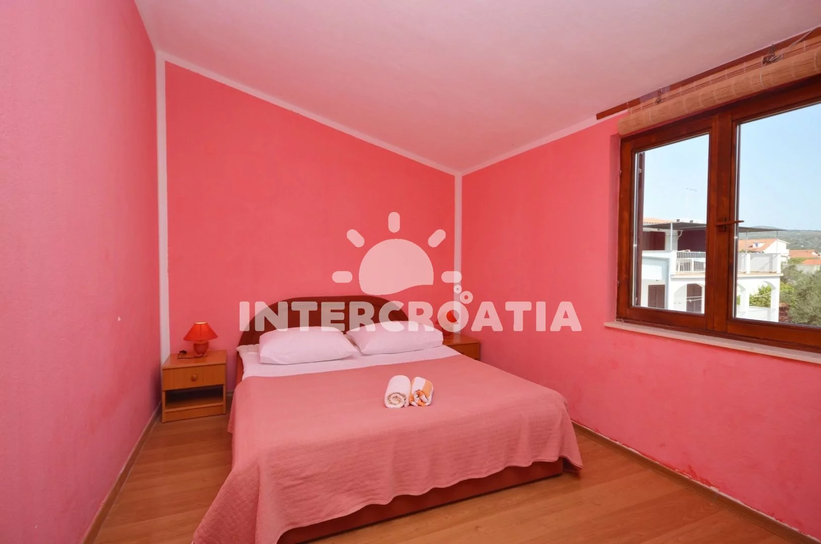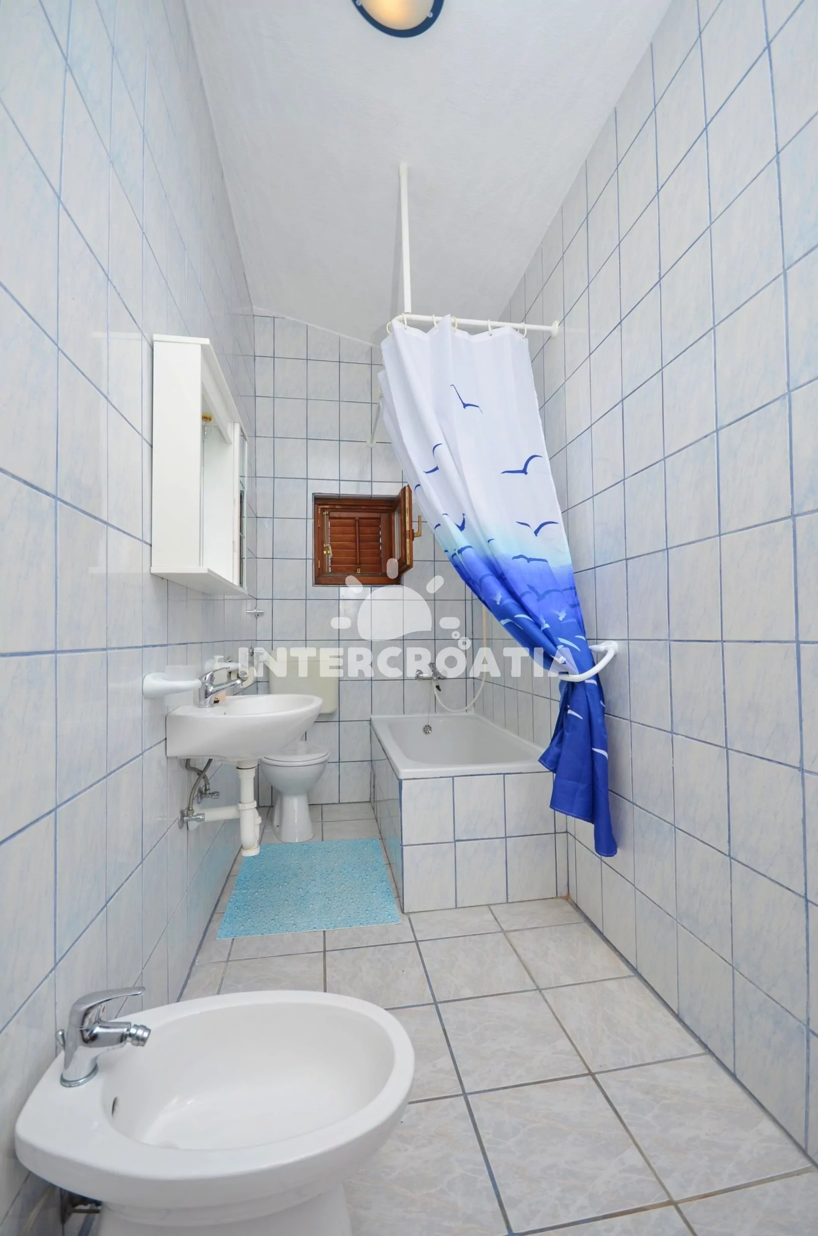 Apartmán (45 m2) s výhledem na moře, sdílenou terasou a venkovním posezením, nachází se v druhém patře domu a je vhodný pro 2 až 4 osoby. Obývací pokoj je spojený s kuchyní. Kuchyňská linka je vybavena sporákem, digestoří, troubou, rychlovarnou konvicí, kávovarem, nádobím a lednicí s mrazákem. Obývací pokoj s jídelním stolem pro 4 osoby, sedací soupravou, pohovkou (rozložitelná na extra lůžko pro 2 osoby), televizí se satelitním programem, klimatizací a vstupem na terasu. Ložnice s jedním dvoulůžkem. Koupelna s vanou, sprchovou zástěnou, umyvadlem, bidetem a wc. Hostům je k dispozici parkování u objektu zdarma.